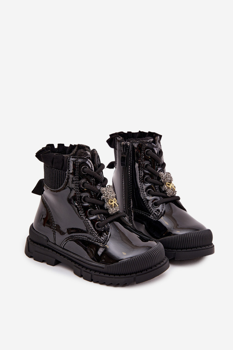 avec effet vernis Bottes Puéril réchaufferPrzypinką Nounours couleur noire Fionessa