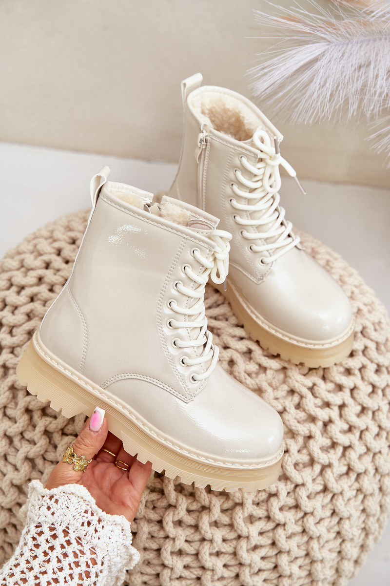 Bottines pour enfants doublées avec effet verni couleur sable Novita