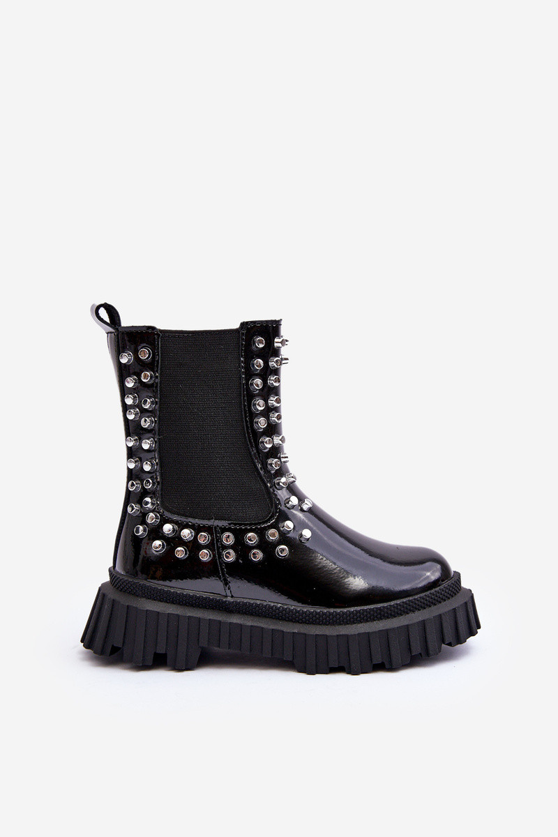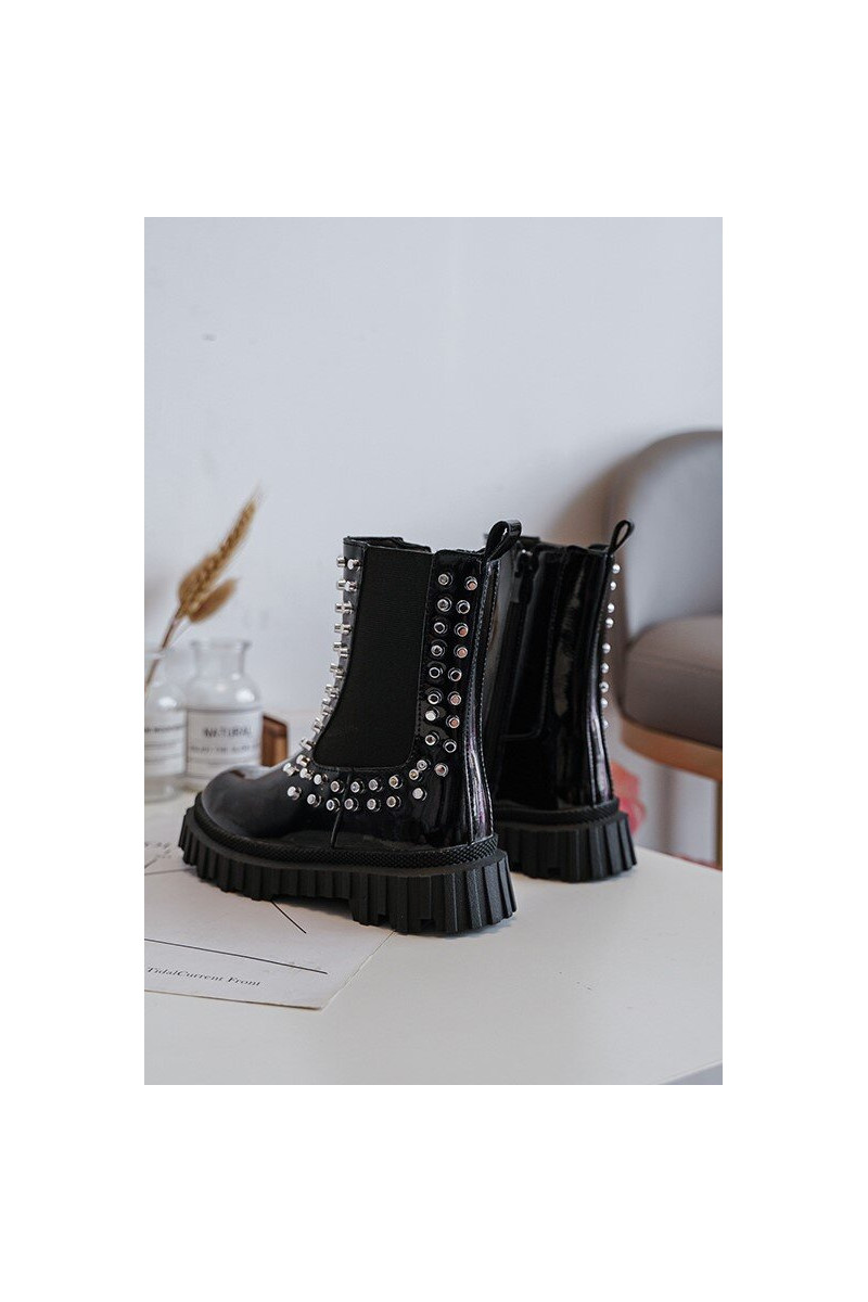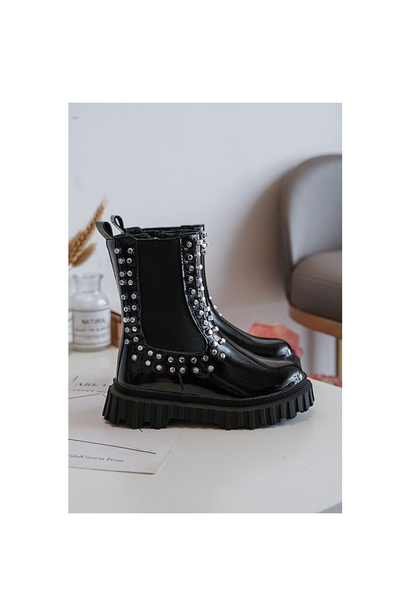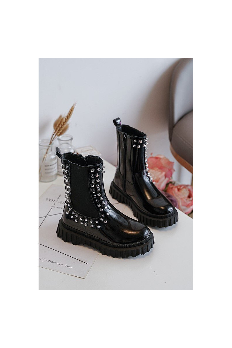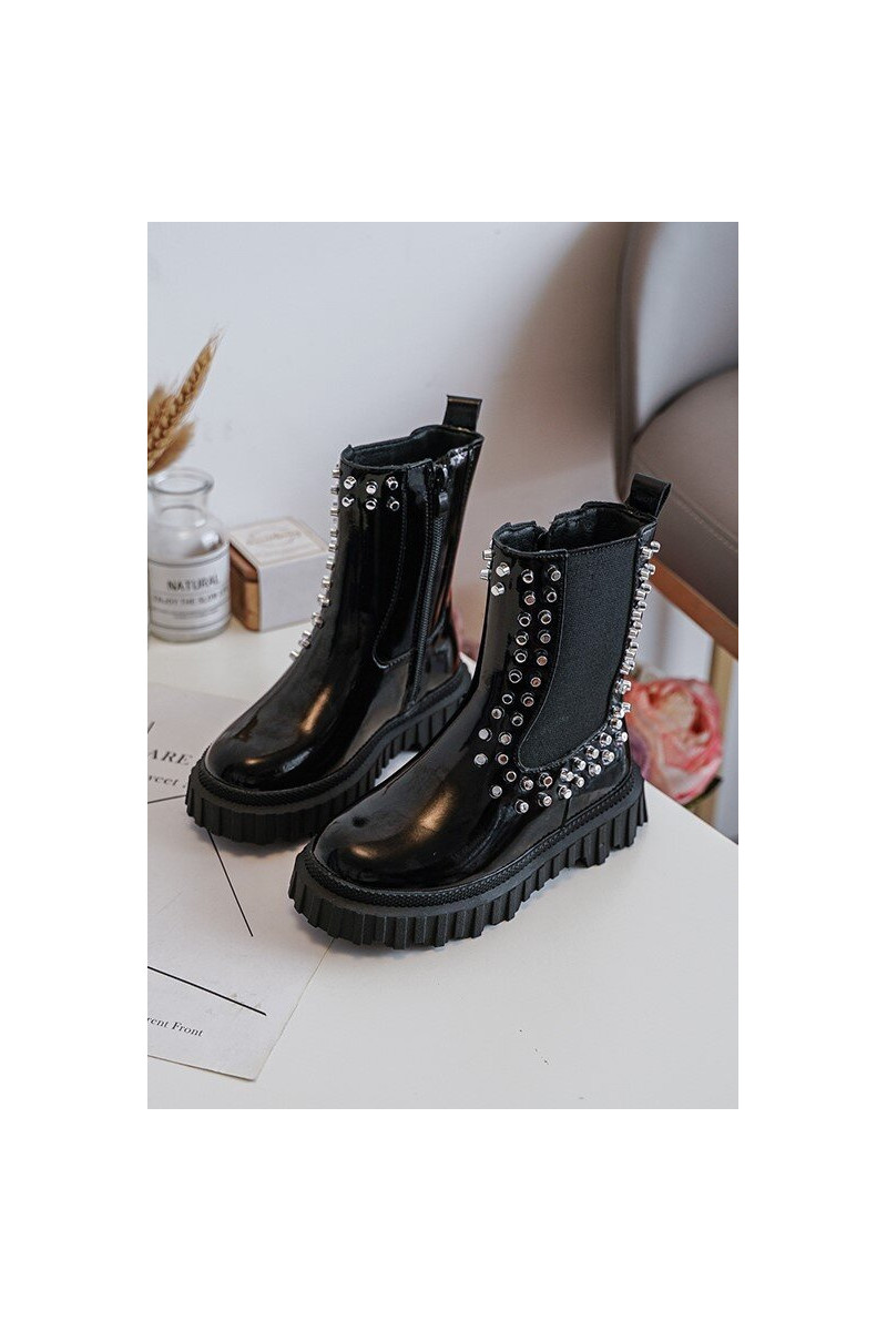 avec effet vernis bottes élégantes Puéril Décoré Avec des strass couleur noire Adelie