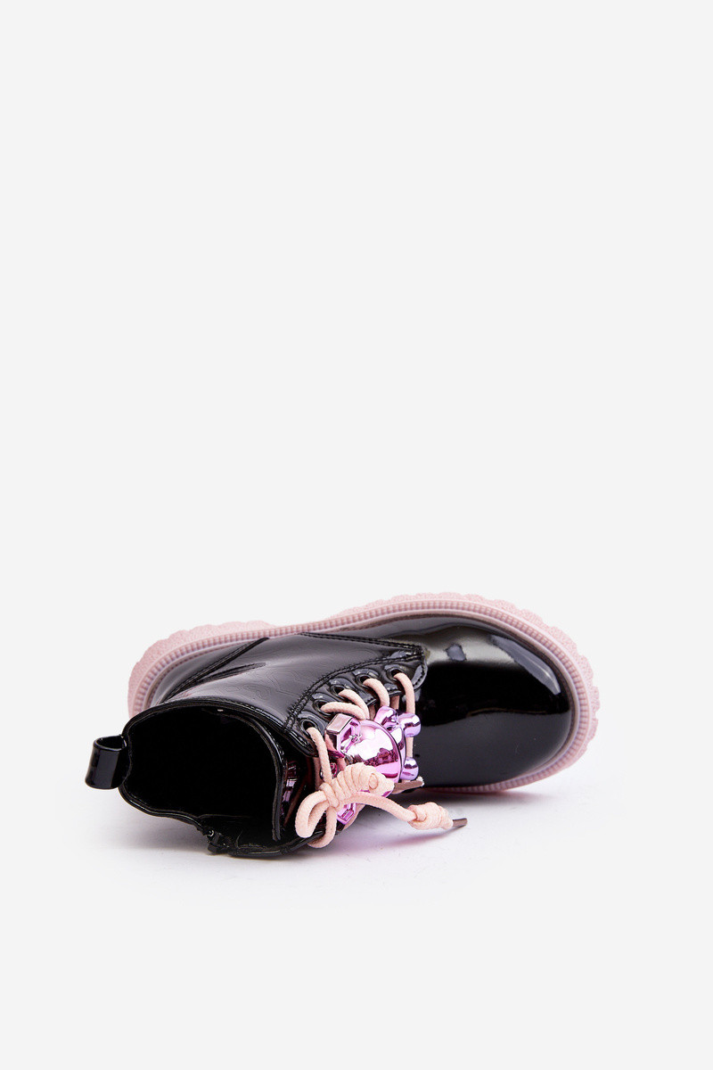 avec effet vernis Bottes Puéril réchauffer avec des ornements Noir et-couleur rose Bunnyjoy