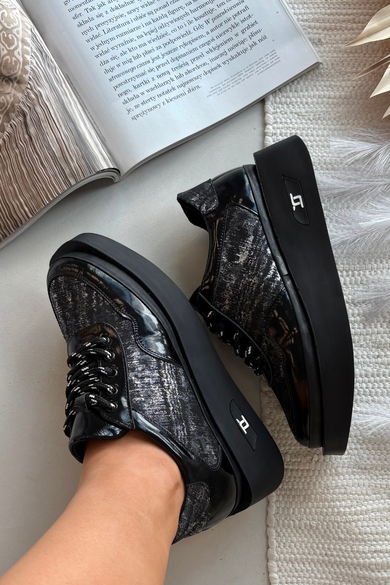 Peau Chaussures à lacets Féminin avec une plateforme Artiker 57C2043 Noir et-couleur argent