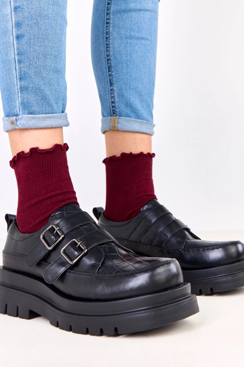 Bottines noires sur semelle massive, décorées de boucles, Juke