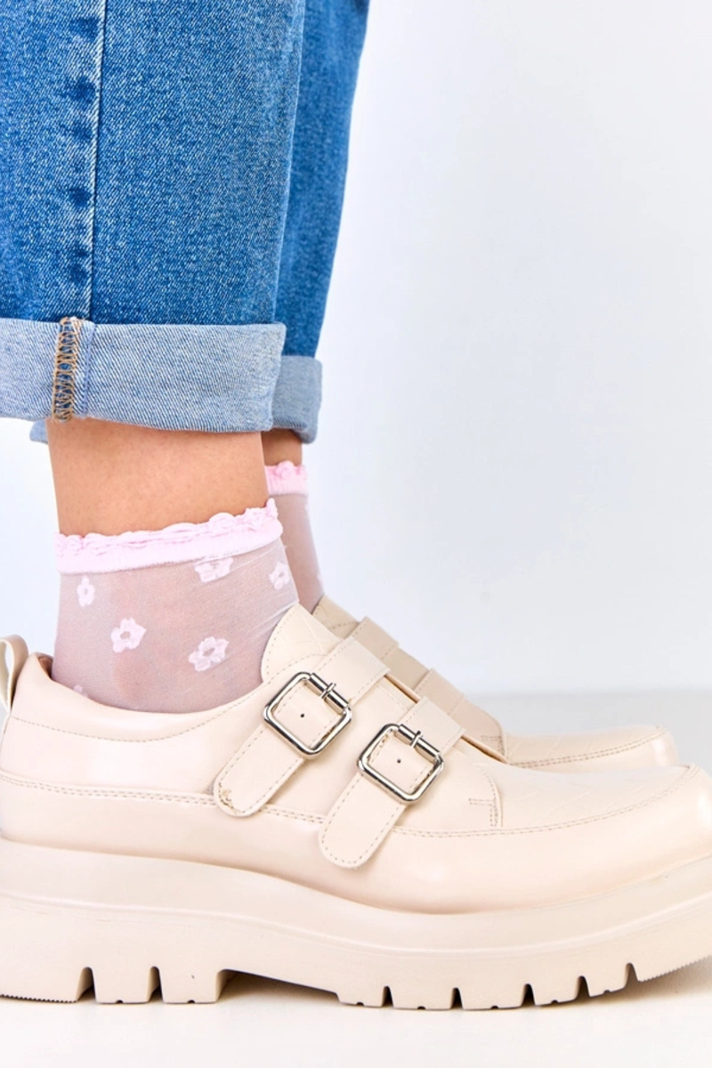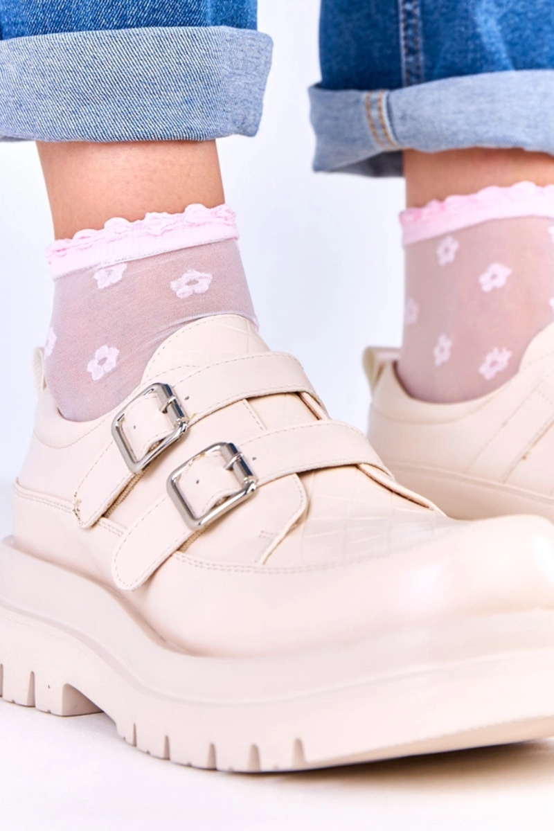 Bottines beiges sur semelle massive, décorées de boucles, Juke