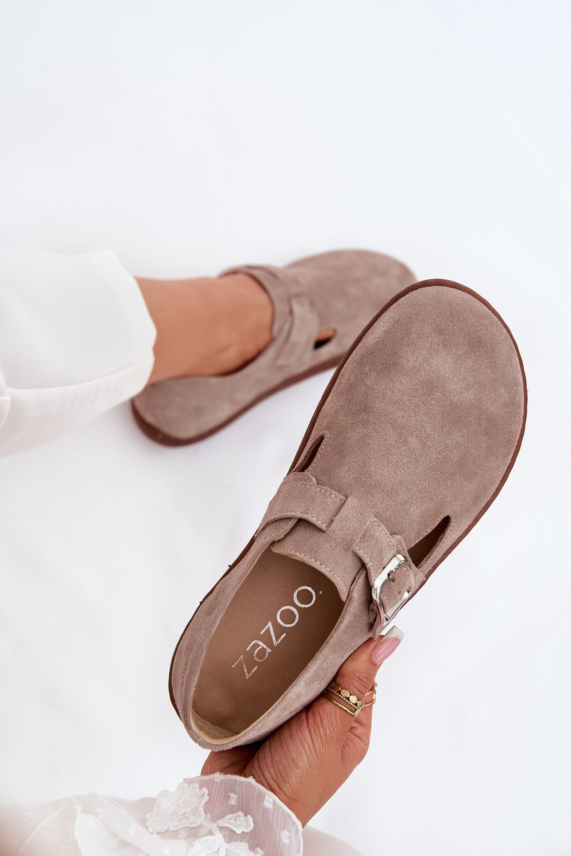 en daim chaussures Barefoot Féminin avec boucles Zazoo N1261 beige