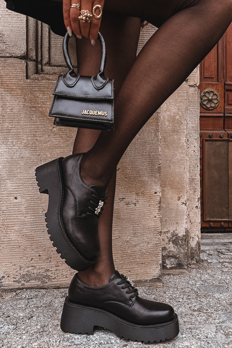 Chaussures en cuir noires pour femmes sur plateforme Vinceza 39964