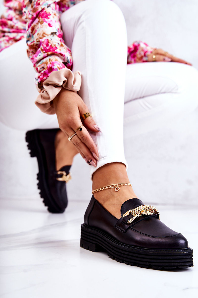 Féminin chaussures couleur dorée Ozdoba Peau Laura Messi 2383 couleur noire