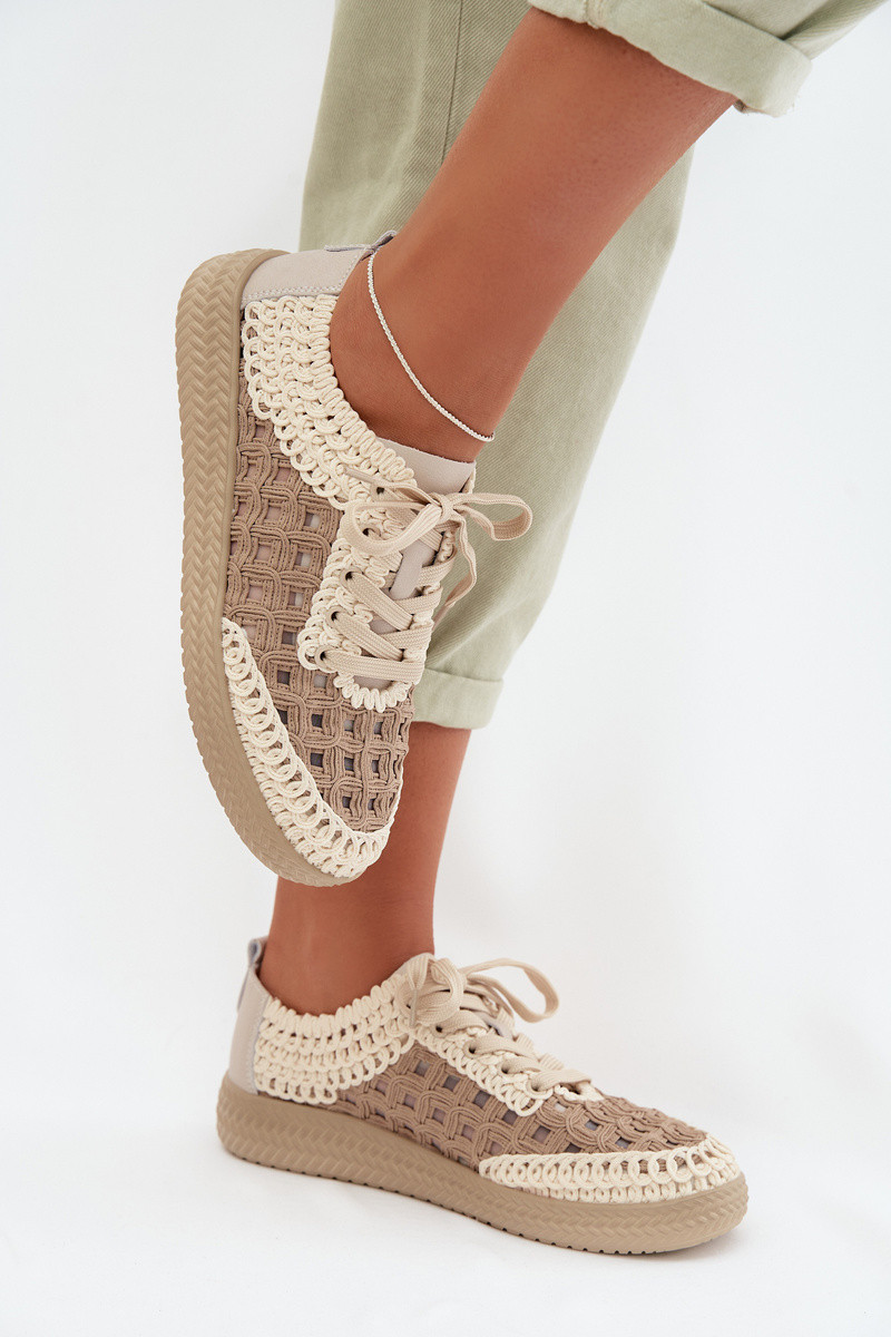 Chaussures en cuir beiges à motifs pour femmes D&A GR61-5951