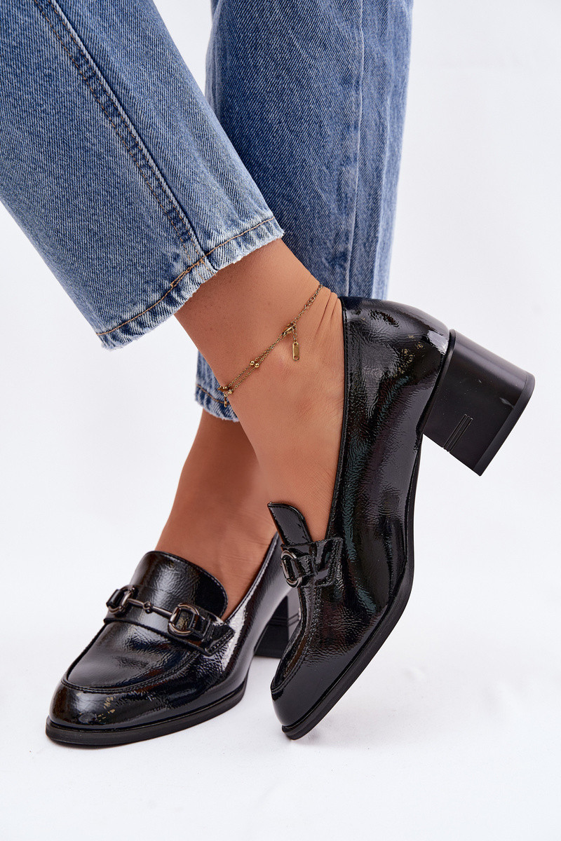 Bottines en cuir verni pour femmes avec talons Vinceza 18116 noires