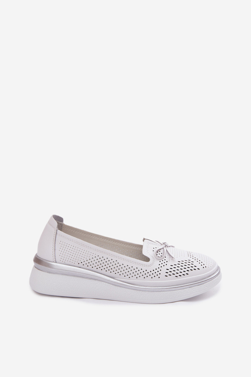 Peau avec des éléments ajourés chaussures avec une plateforme S.Barski LR61-7043 couleur blanche
