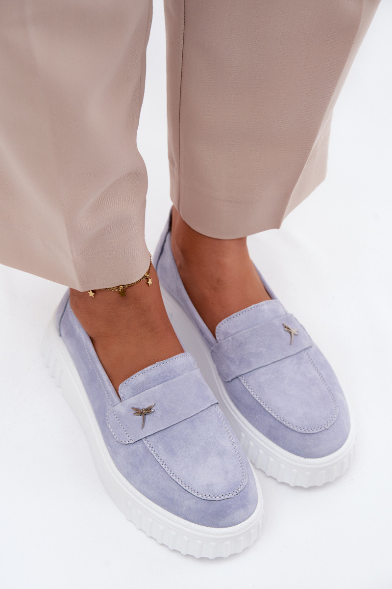 Peau en daim chaussures Féminin avec une plateforme Un modèle convaincant Vinceza 93218 couleur bleue