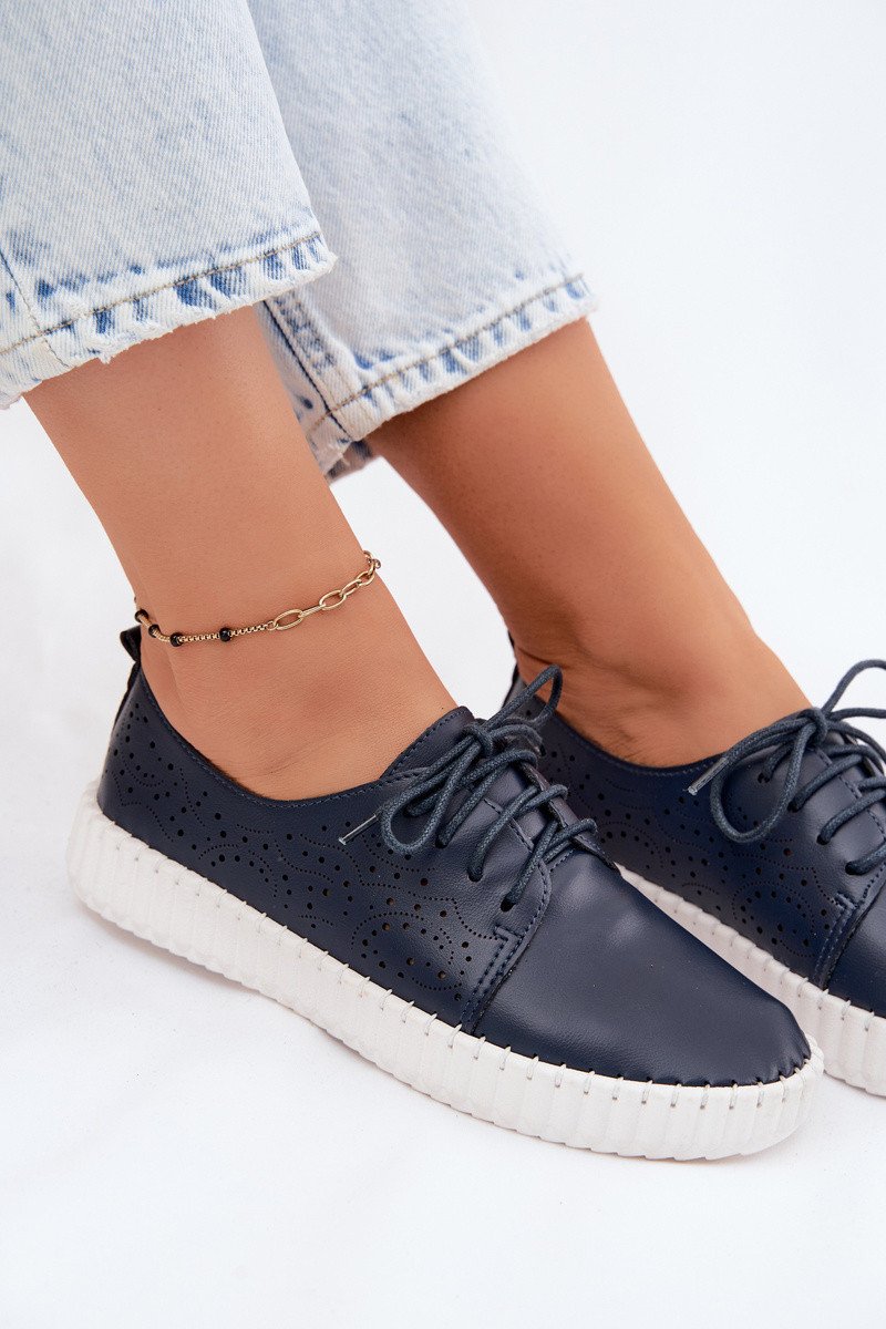 Chaussures perforées bleu marine avec lacets Pearla