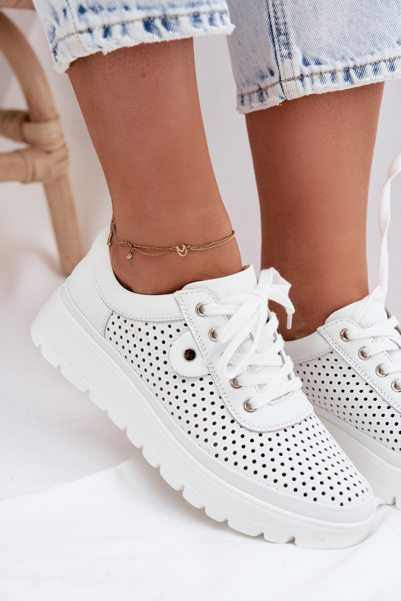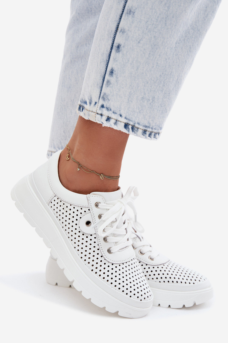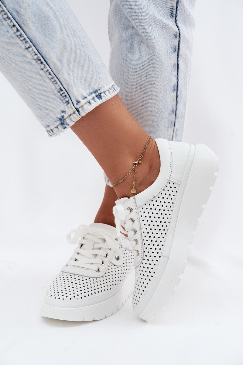 Chaussures en cuir perforé blanches pour femmes Vinceza 79629