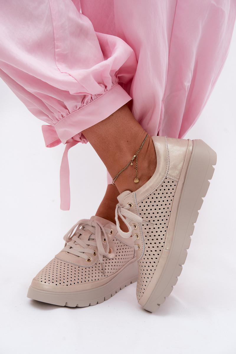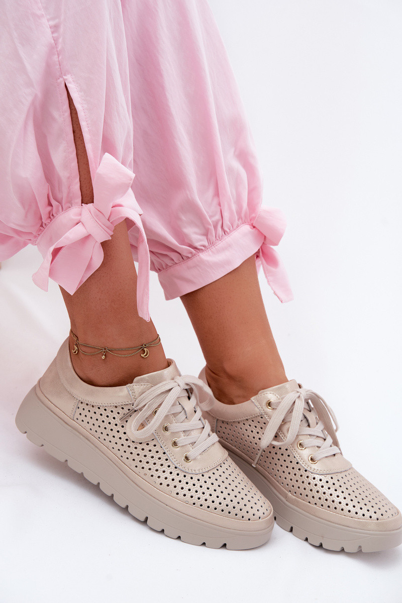Chaussures en cuir perforé dorées pour femmes Vinceza 79629