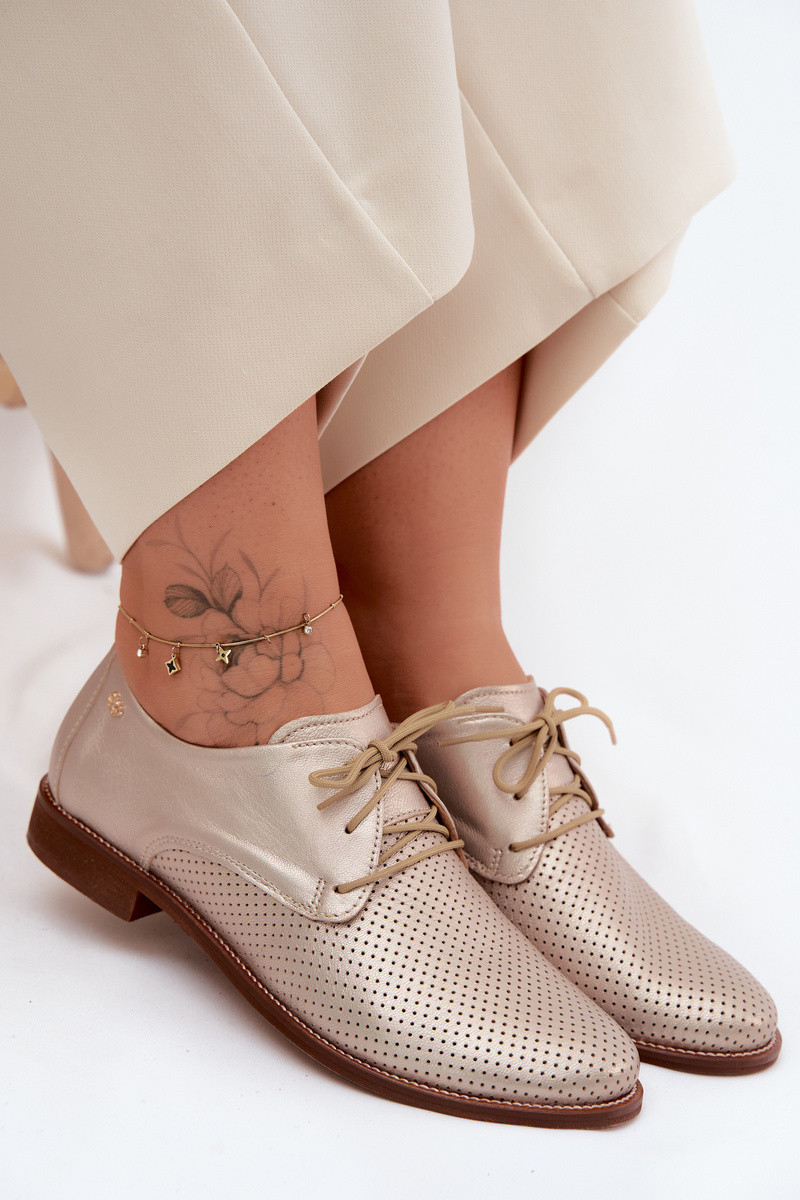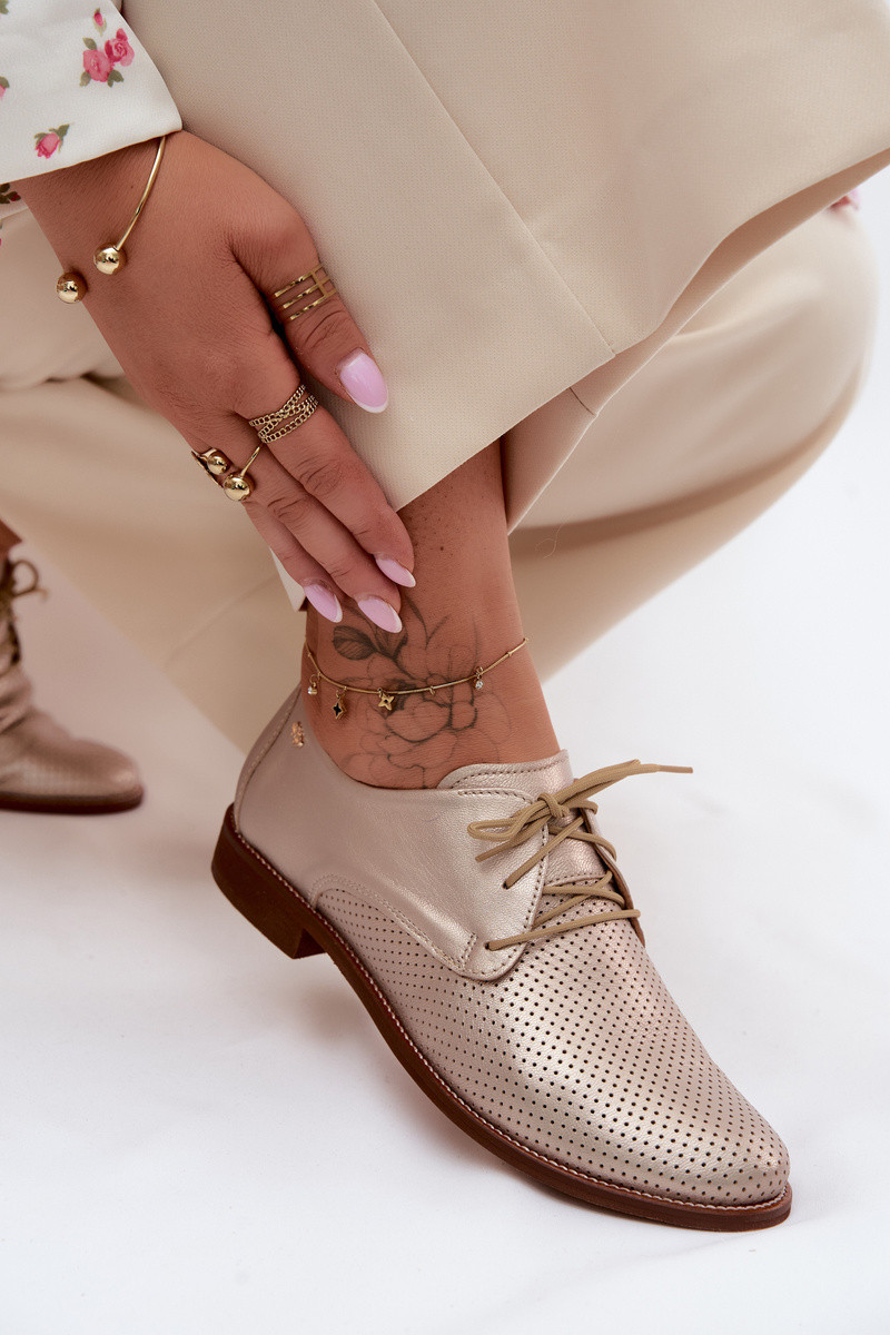 Chaussures en cuir pour femmes élégantes couleur or avec lacets Zazoo 4238