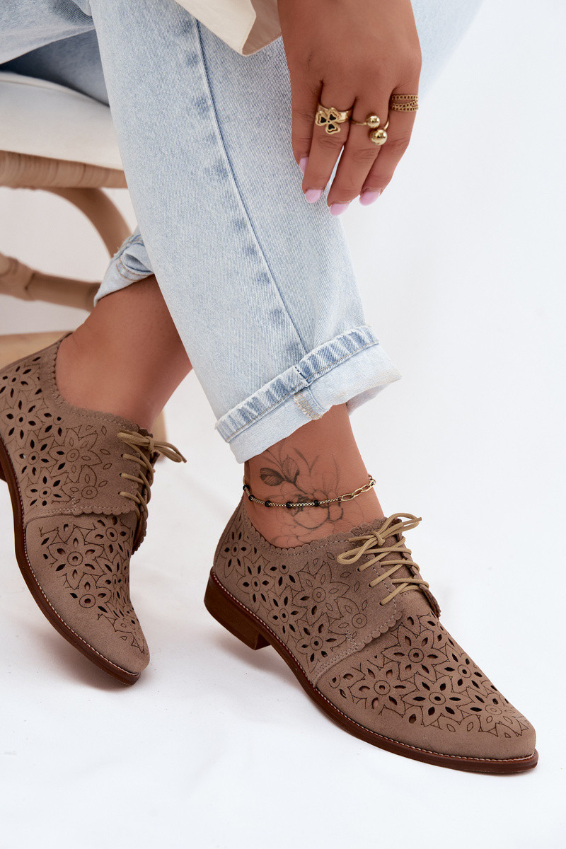 Peau en daim chaussures Féminin avec des éléments ajourés avec des talons larges Zazoo 4156 couleur cappuccino
