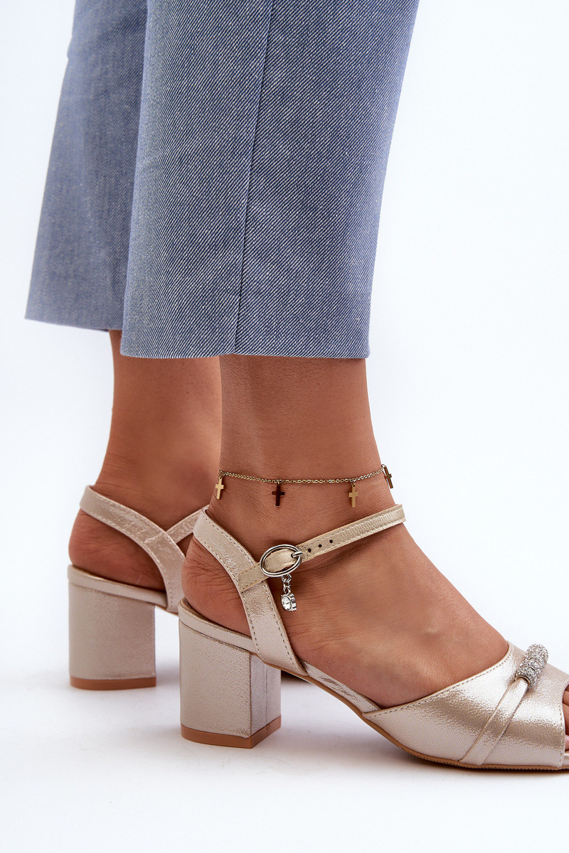 Sandales pour femmes en simili cuir avec talons et beaux détails dorés Narhi
