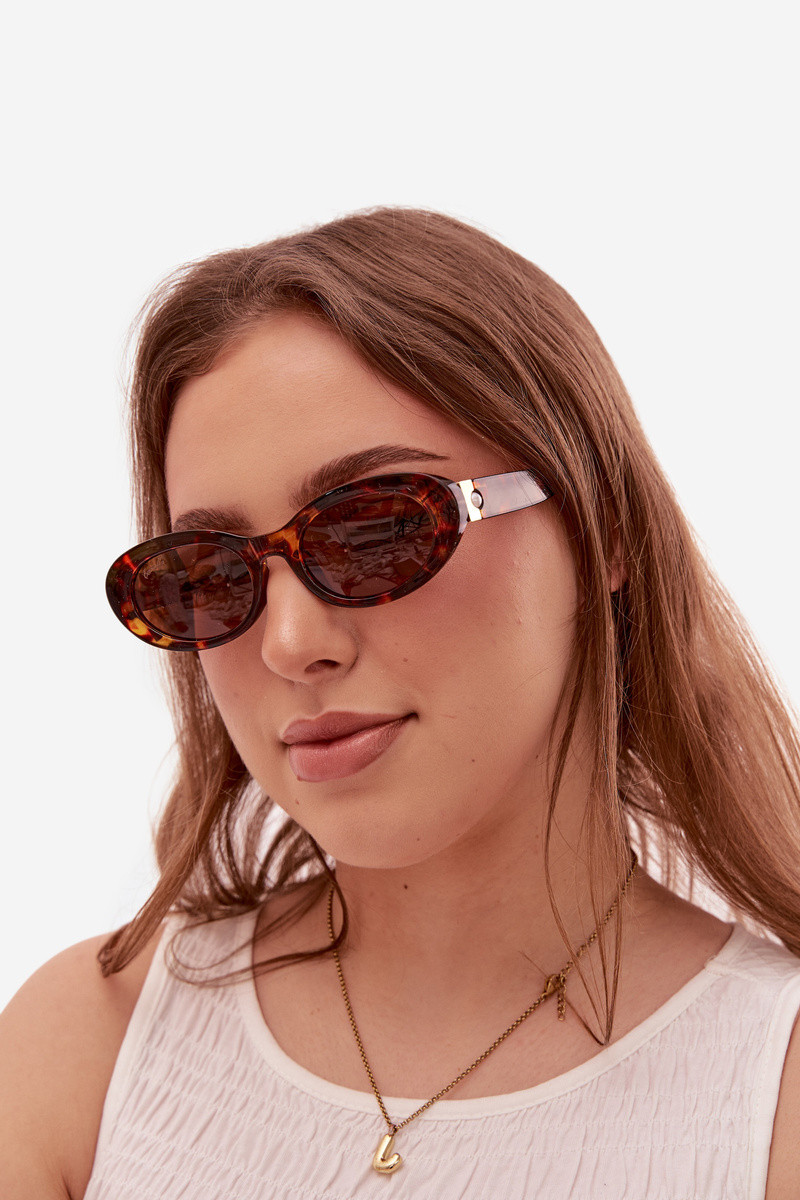 Lunettes de soleil pour femmes avec des perles artificielles couleur marron