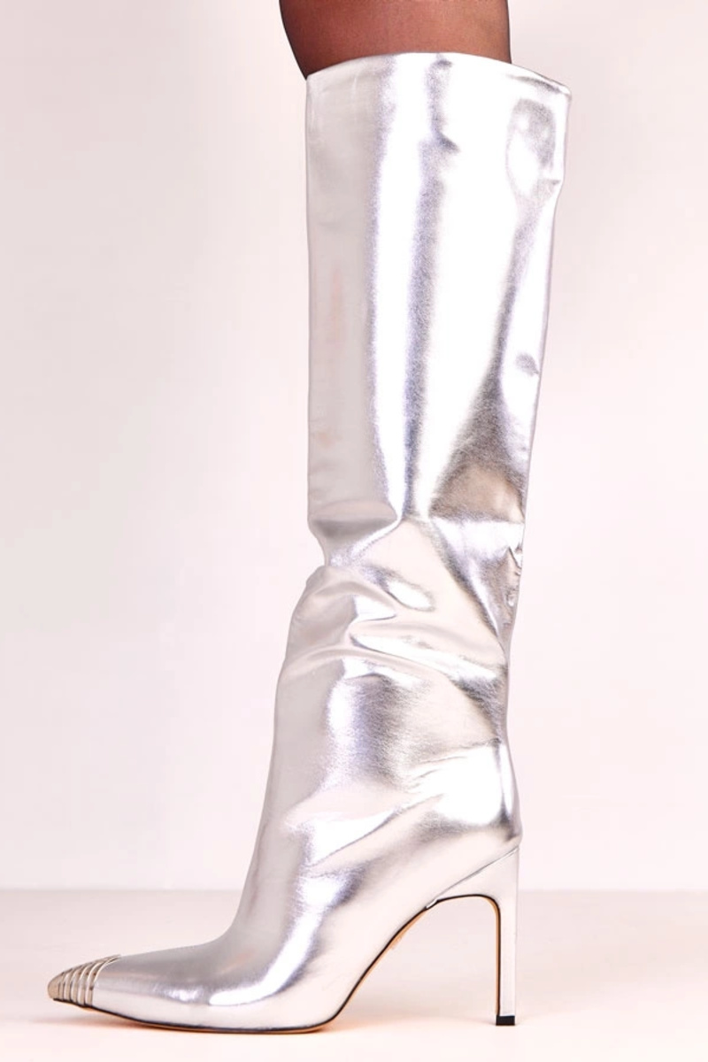 Bottes montantes élégantes argentées avec bout métallique Janisa