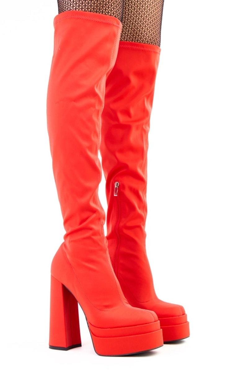 Bottes longues orange avec plateforme haute et talon épais « Zeida »