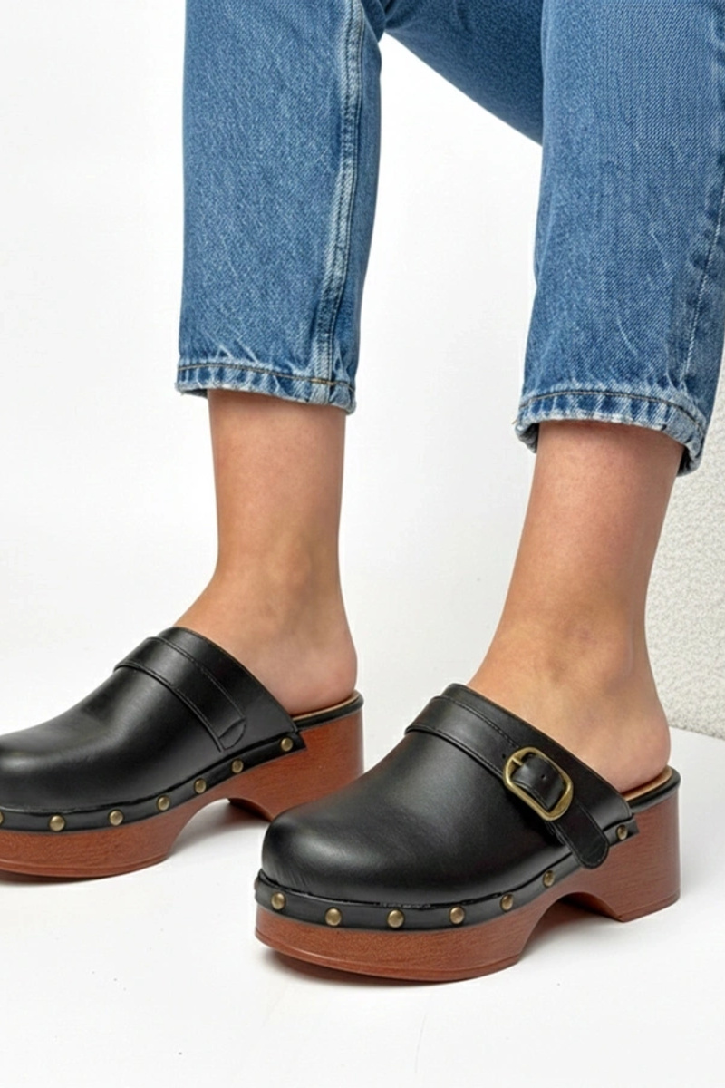 Sabots plateformes à talon noires Floriane