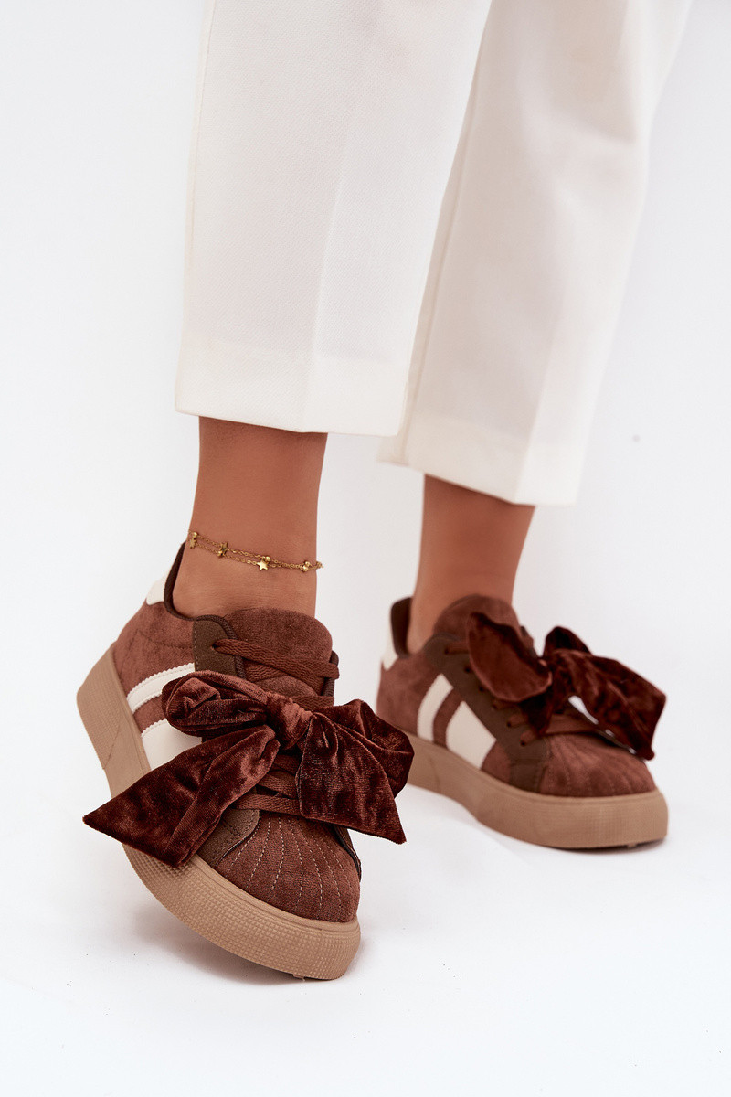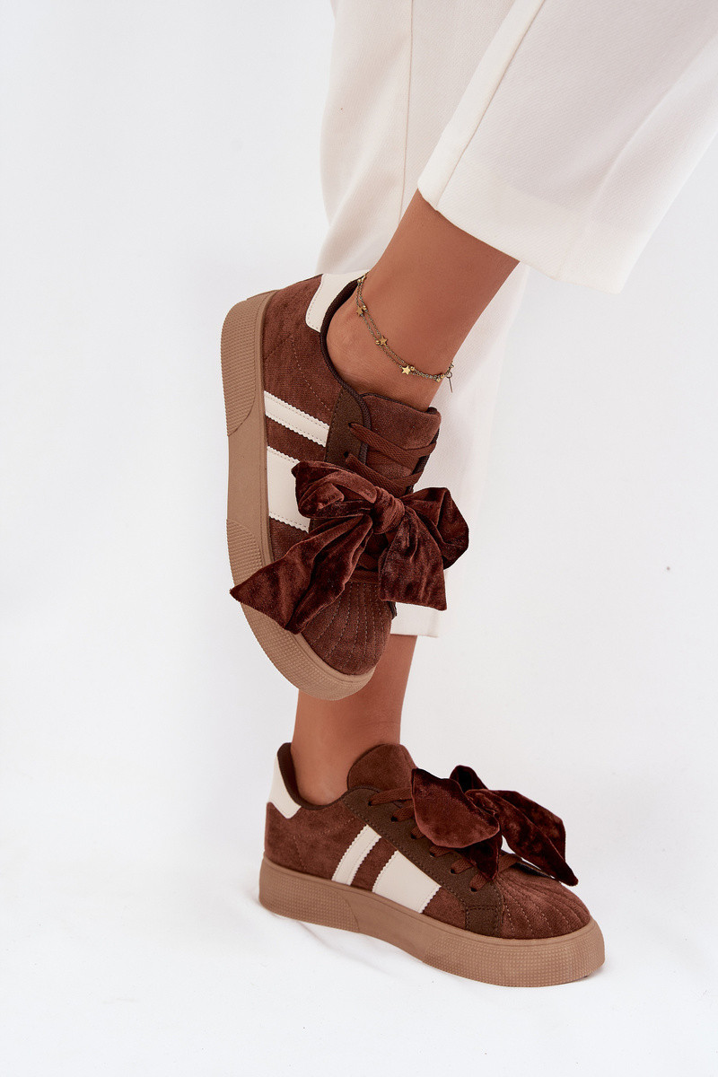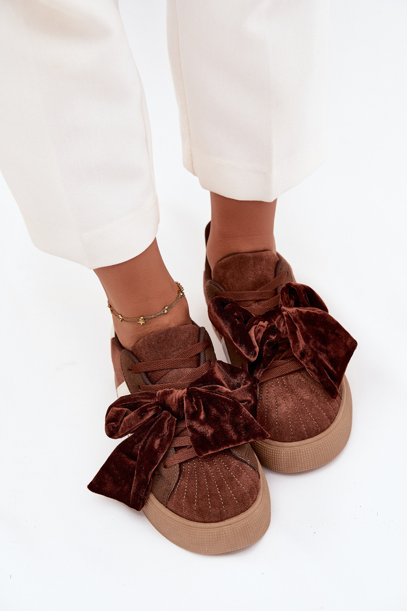 Baskets de style sportif pour femmes avec nœud en velours, couleur marron, Ashlyn