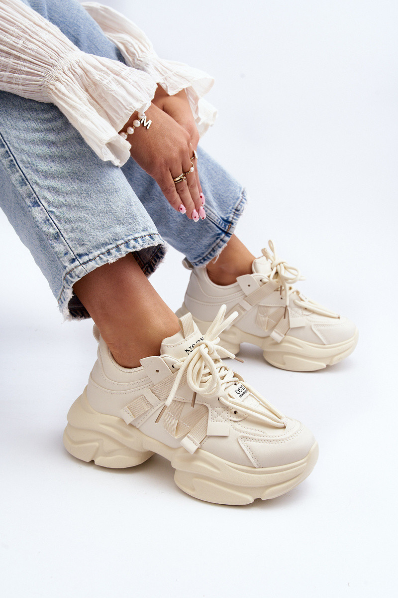 Chaussures modèle baskets Féminin avec des semelles massives à la mode beige DANSindamella