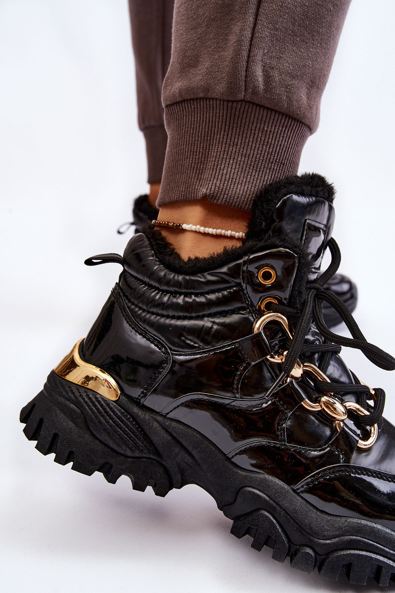 Féminin réchauffer baskets chaussures avec des lacets couleur noire Bastini