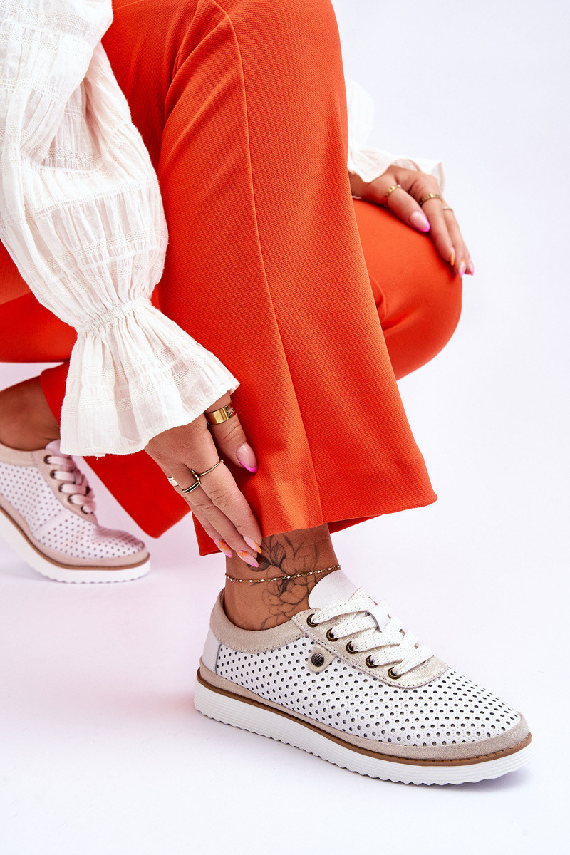 Chaussures en cuir ajourées de style sportif blanches-or dorées Cantare