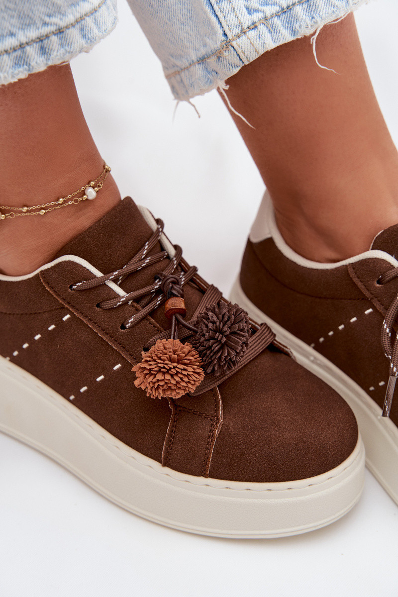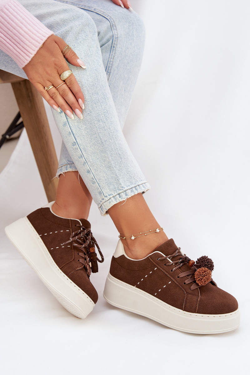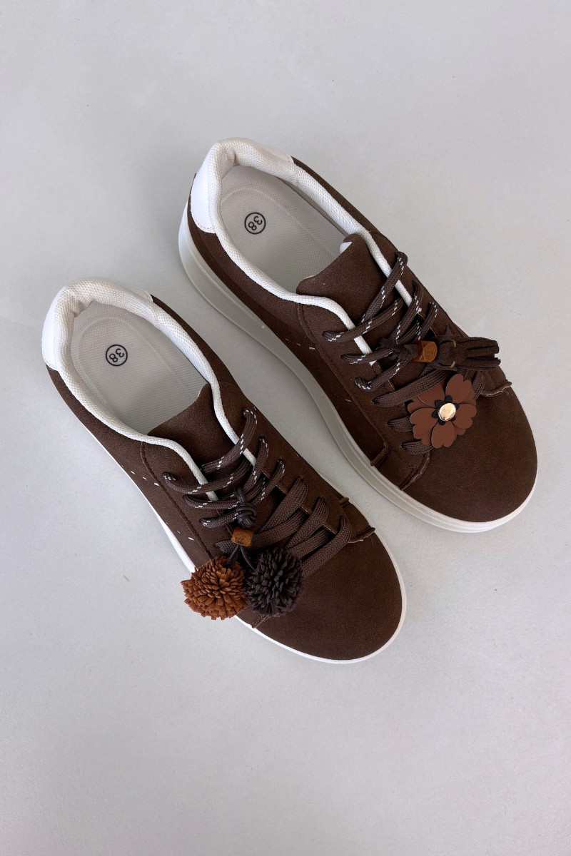 Baskets à plateforme pour femmes Corinna couleur chocolat avec des pompons décoratifs