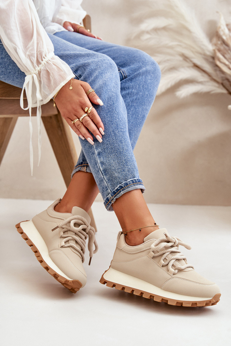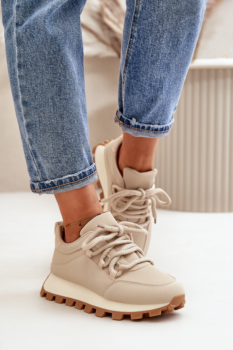 Baskets de sport modèle Sneakers avec plateforme en simili cuir couleur sable Riadella