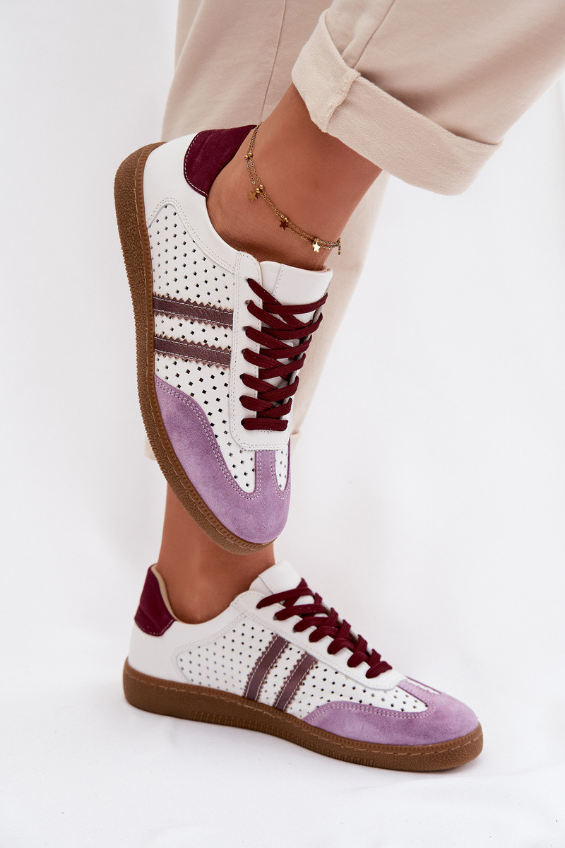 Zazoo N1318 - Baskets pour femmes en simili cuir avec éléments ajourés couleur blanc-violet
