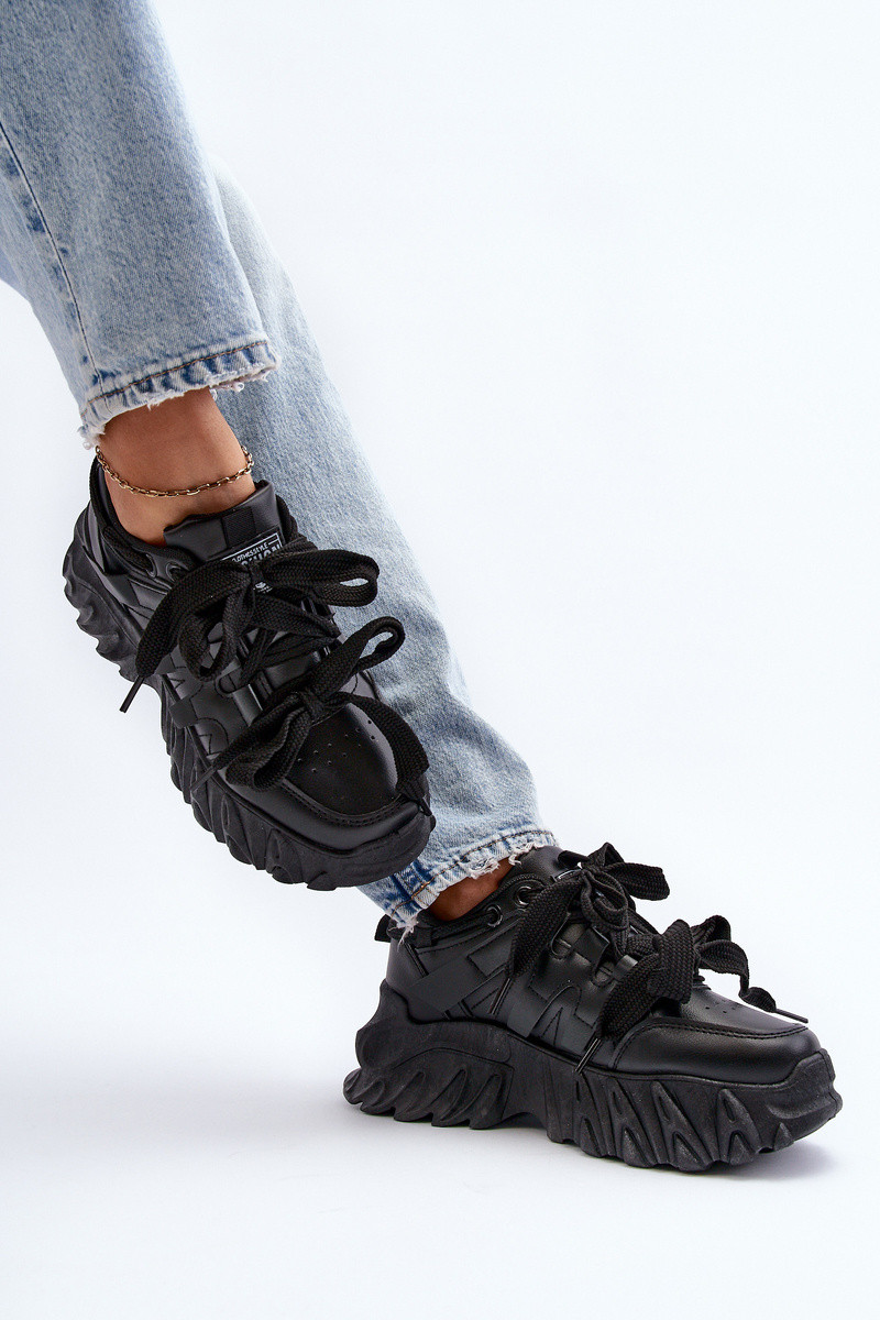 Baskets pour femmes au style sportif avec semelles épaisses couleur noire Ellerai