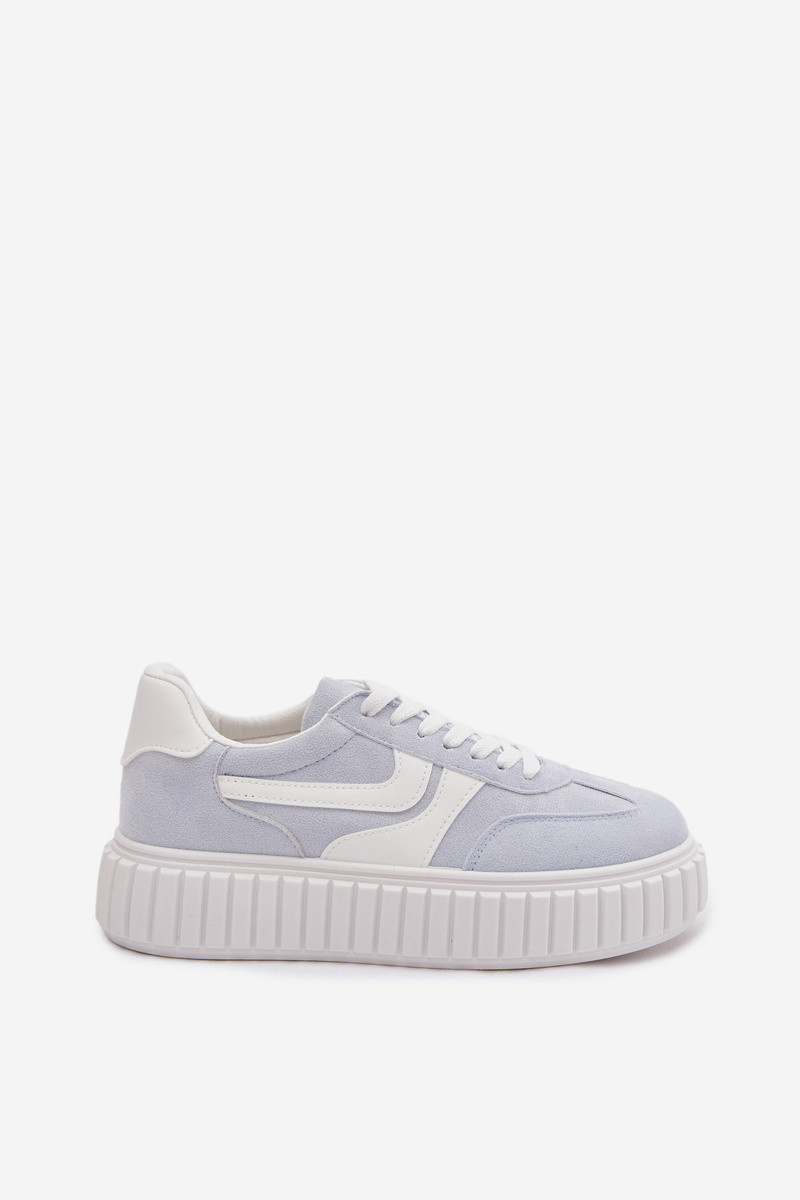 Baskets féminines à plateforme en simili daim couleur bleu clair Cadrina