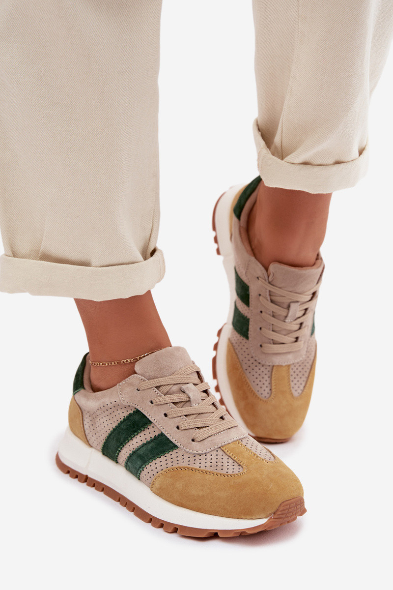 Chaussures modèle baskets FémininActivéturalnego en daimu beige-couleur jaune Il fautrceline