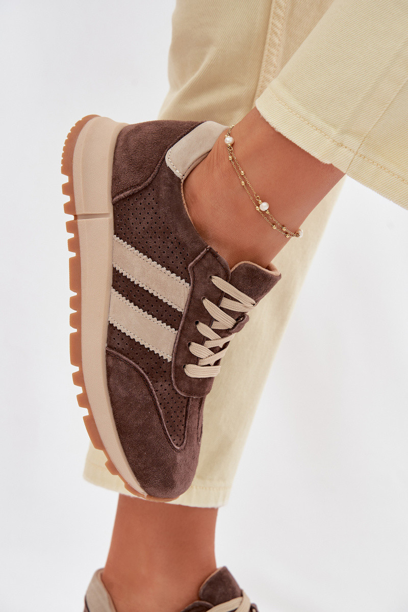 Baskets en simili cuir brunes pour femmes