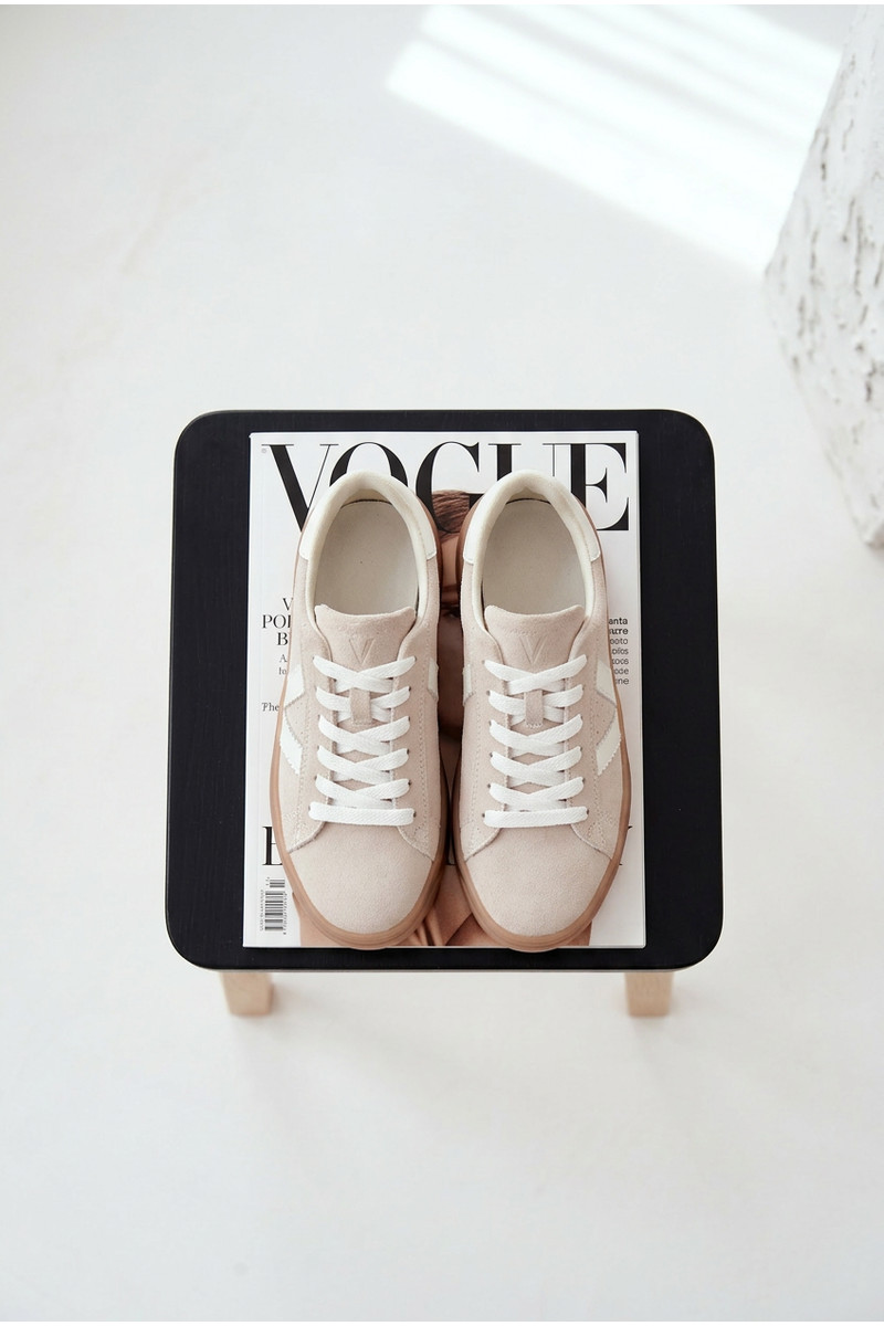 Chaussures modèle baskets FémininActivéturalnego en daimu avec une plateforme Vinceza 79597 beige