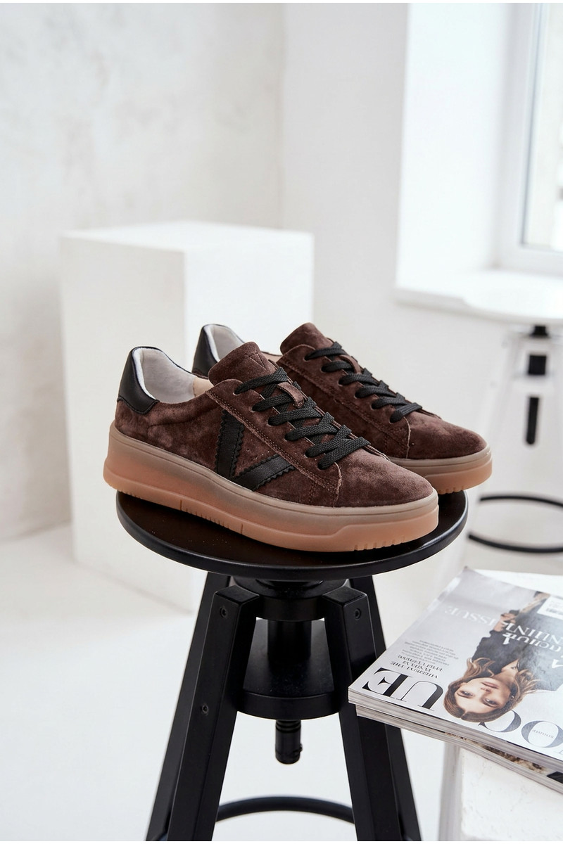 Chaussures modèle baskets FémininActivéturalnego en daimu avec une plateforme Vinceza 79597 marron