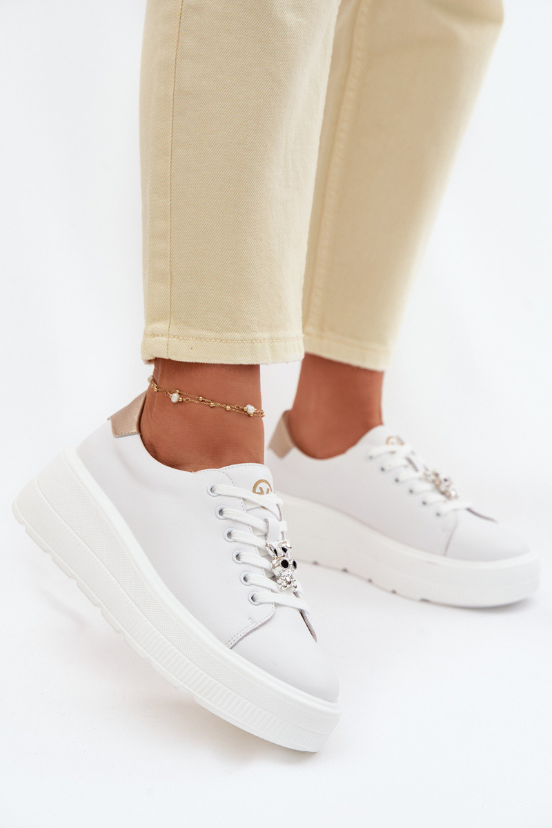 Baskets en cuir avec plateforme pour femmes Vinceza 39973 blanches