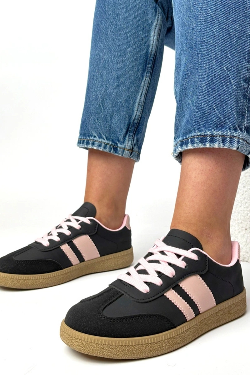 Baskets quotidiennes noires et roses à plateforme Thérèse