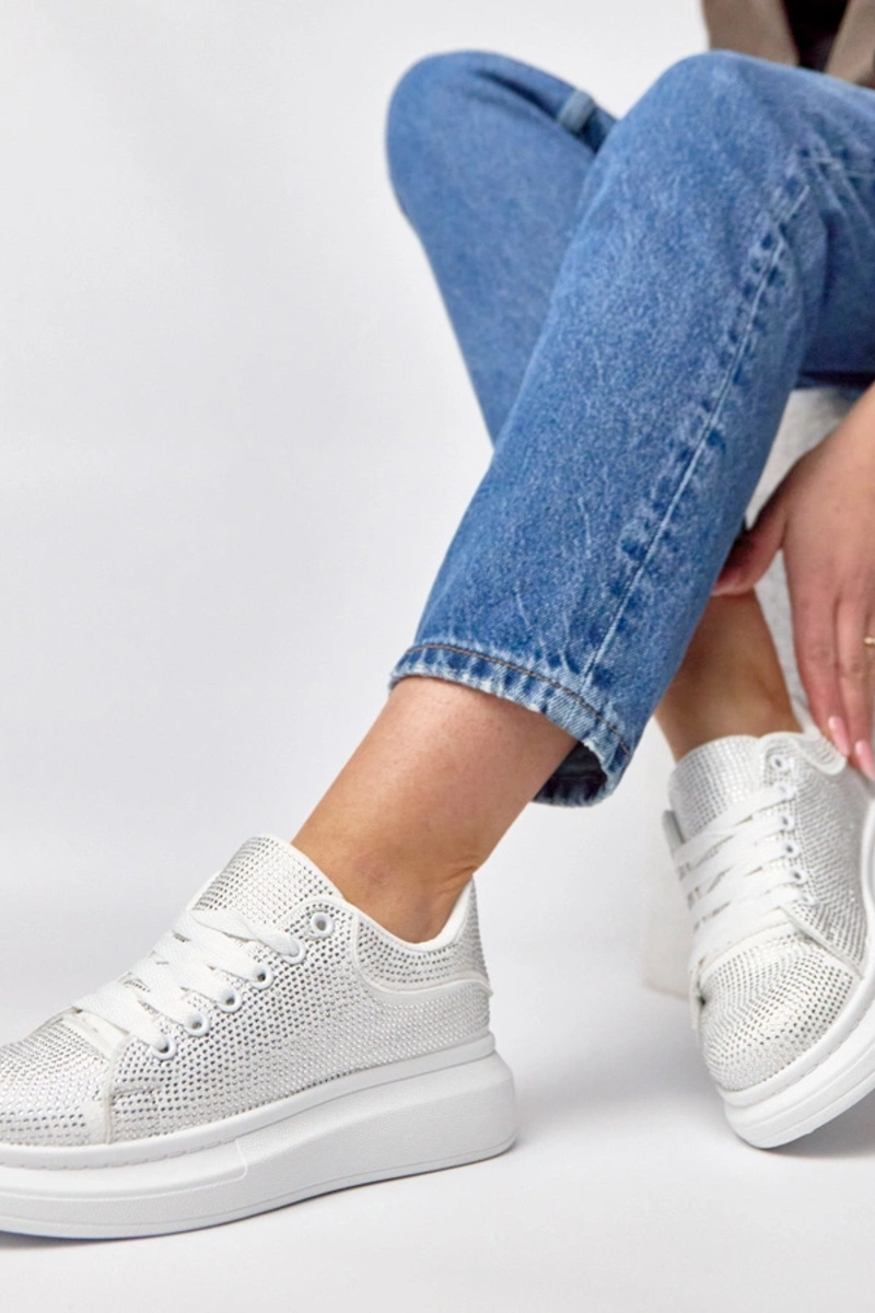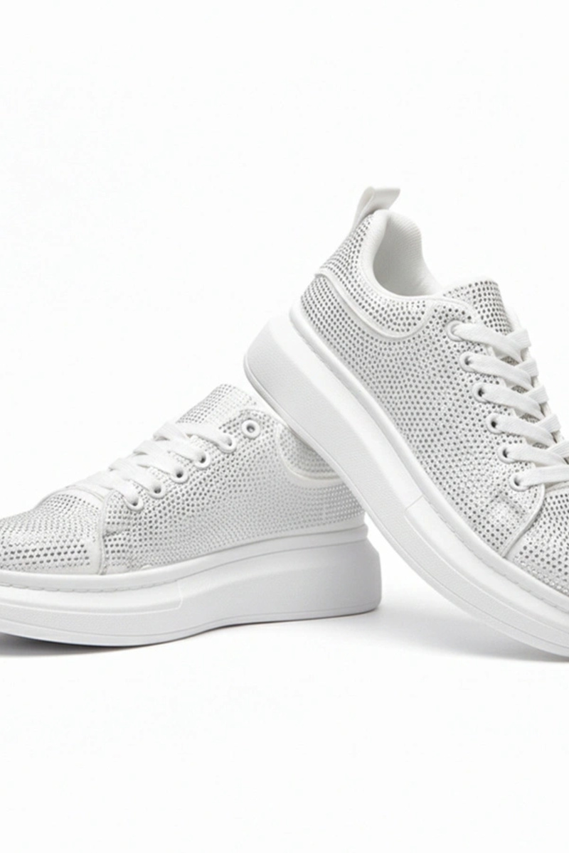 Baskets plateforme blanches ornées de zircon Rosalie