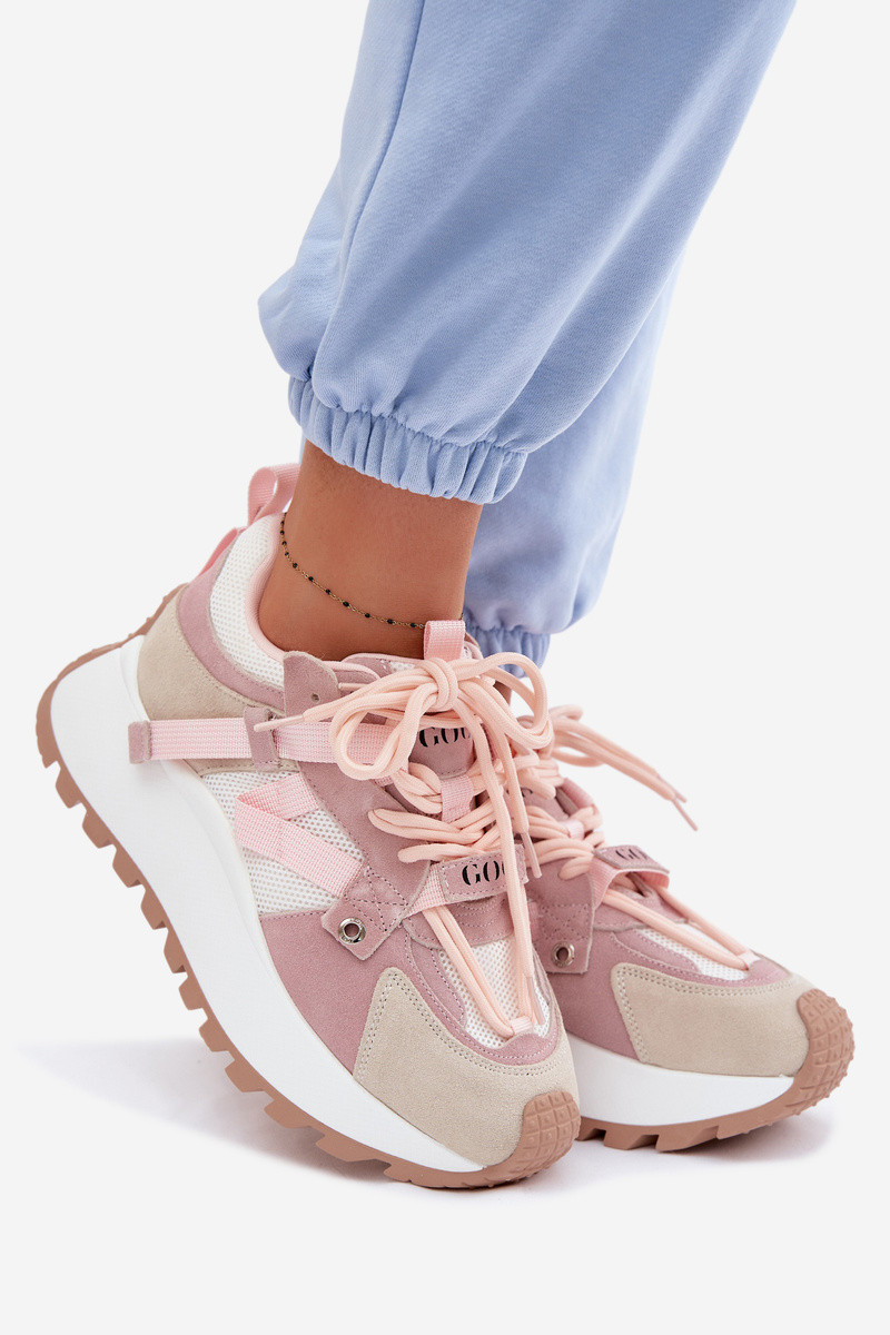 Chaussures modèle baskets avec une plateformeActivéturalnego en daimu GOE TT2N4022 couleur rose