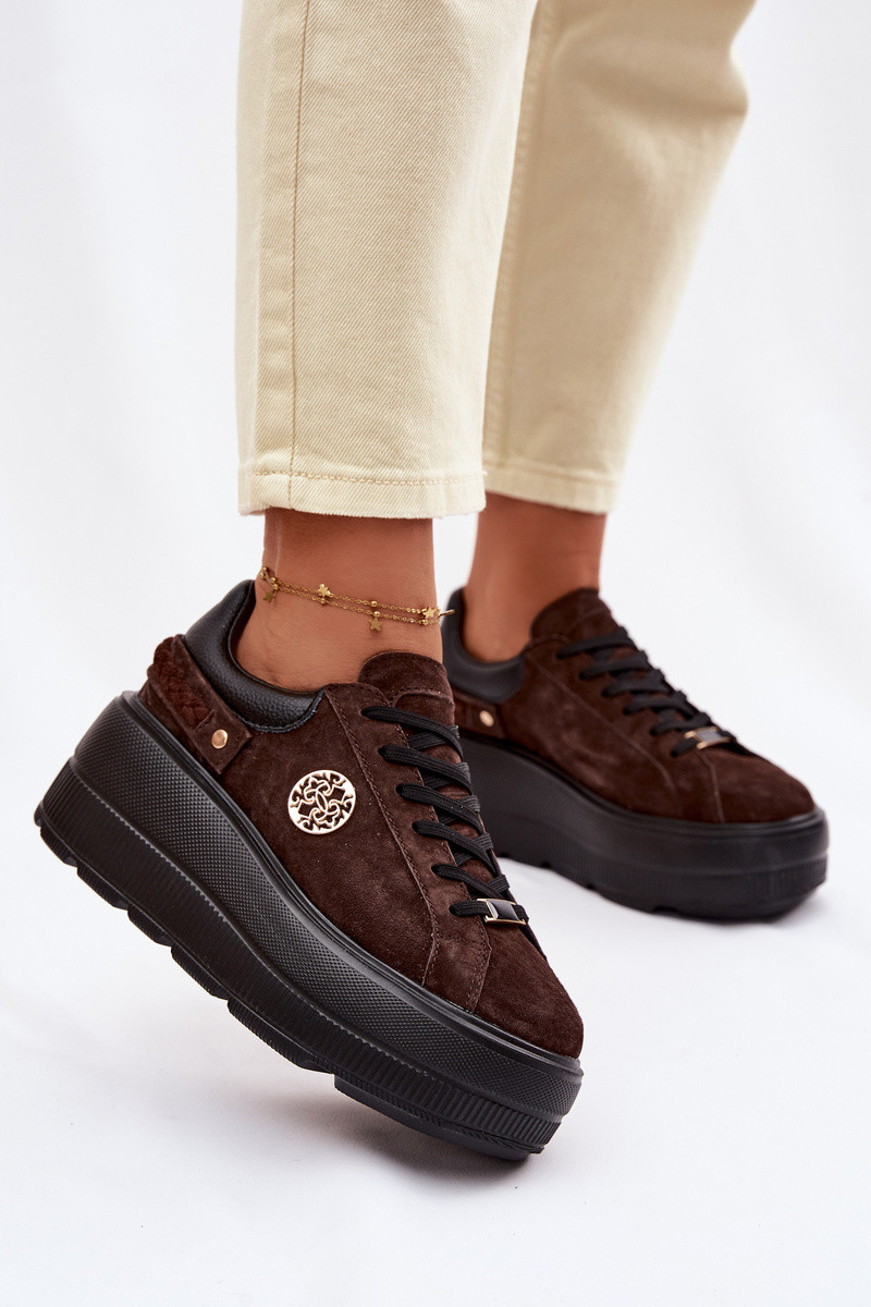 Peau en daim Chaussures modèle baskets Féminin avec une plateforme D&A LR61-7094 CzekoladoÀe