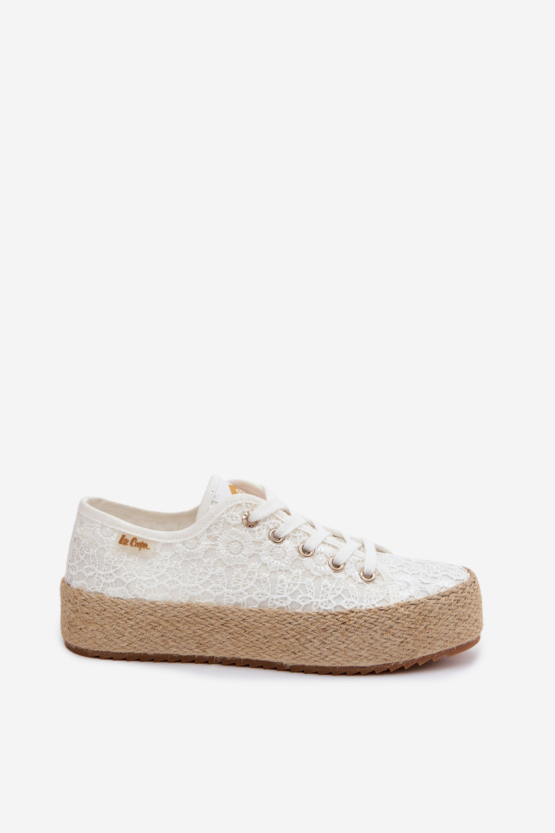 avec des motifs de dentelle chaussures décontractées espadrilles avec une plateforme Lee Cooper LCDANS-26-31-4326 couleur blanch