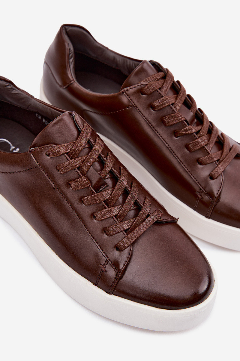 Baskets de style sportif pour hommes en simili cuir brun foncé Velton