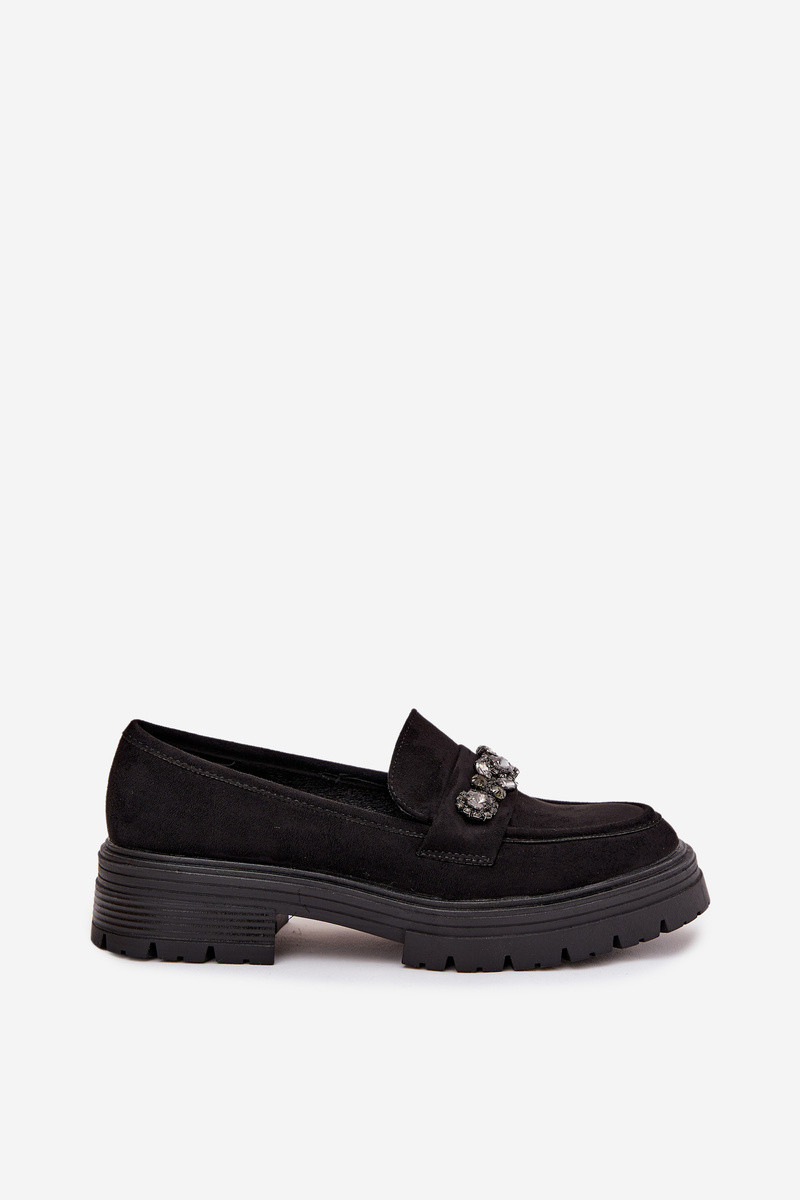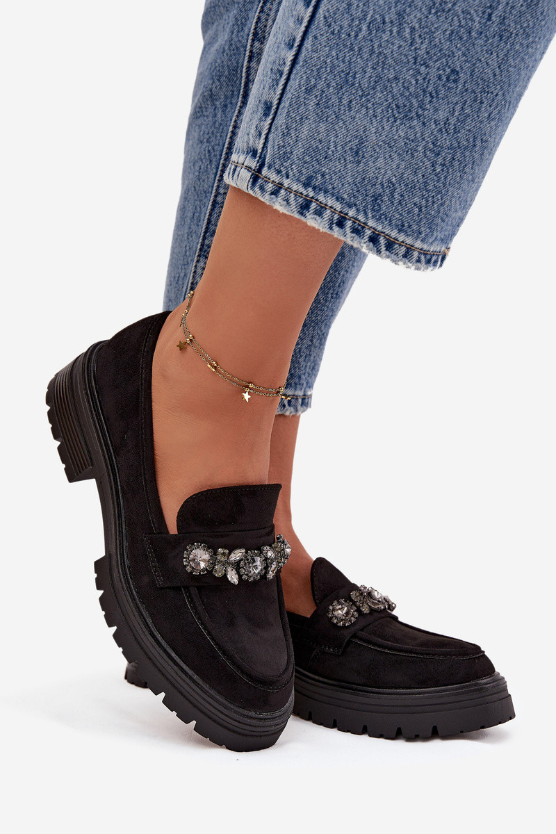 mocassins pour femmes aux yeux brillants en daim écologiqueoÀe couleur noire Lavisse