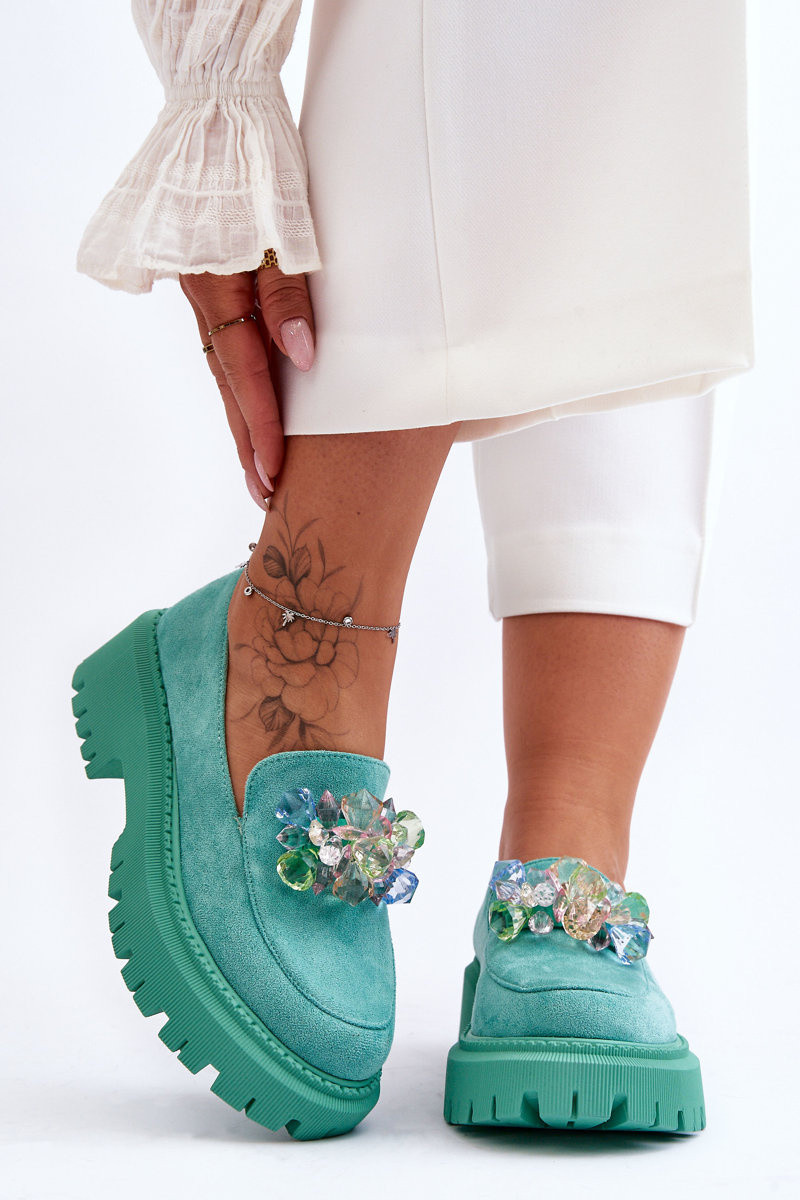 Mocassins pour femmes avec cristaux artificiels couleur verte Avril