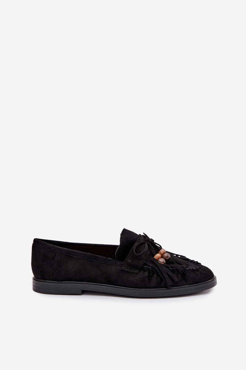 Mocassins pour femmes avec des franges, couleur corail-noir, Teressa