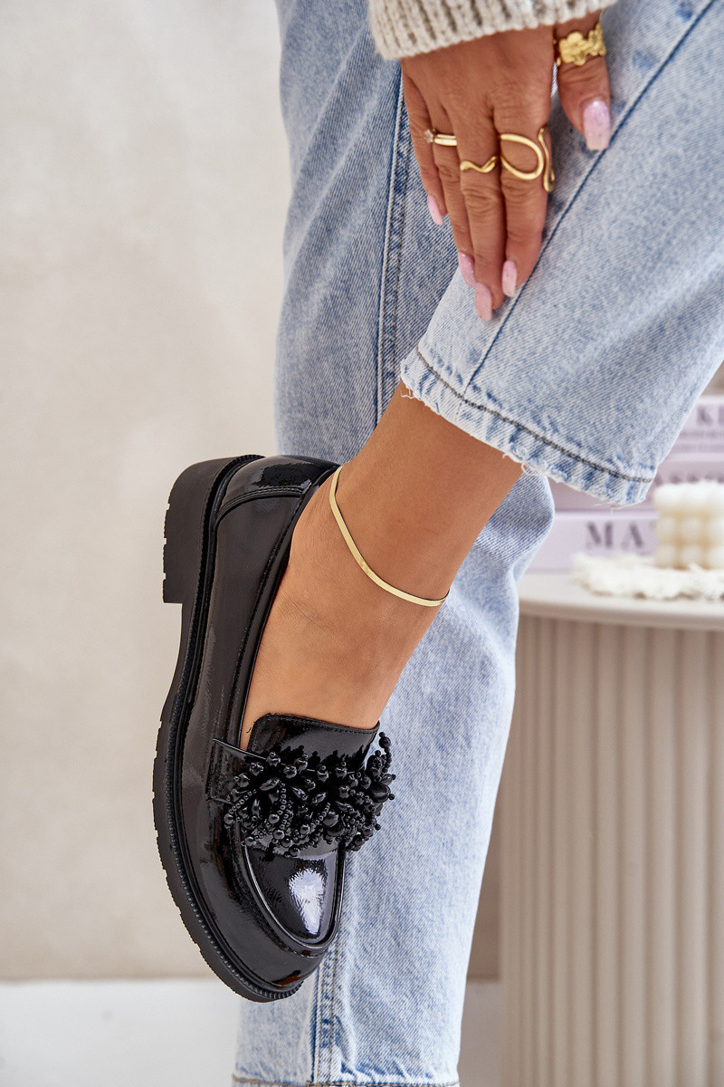 Féminin Mocassins avec effet vernis S.Barski HY369A couleur noire