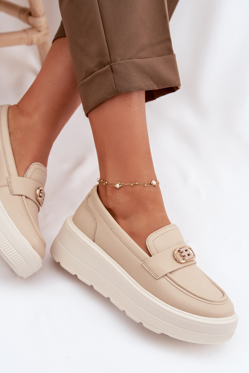 Mocassins pour femmes avec plateforme en cuir Vinceza 39974 couleur sable