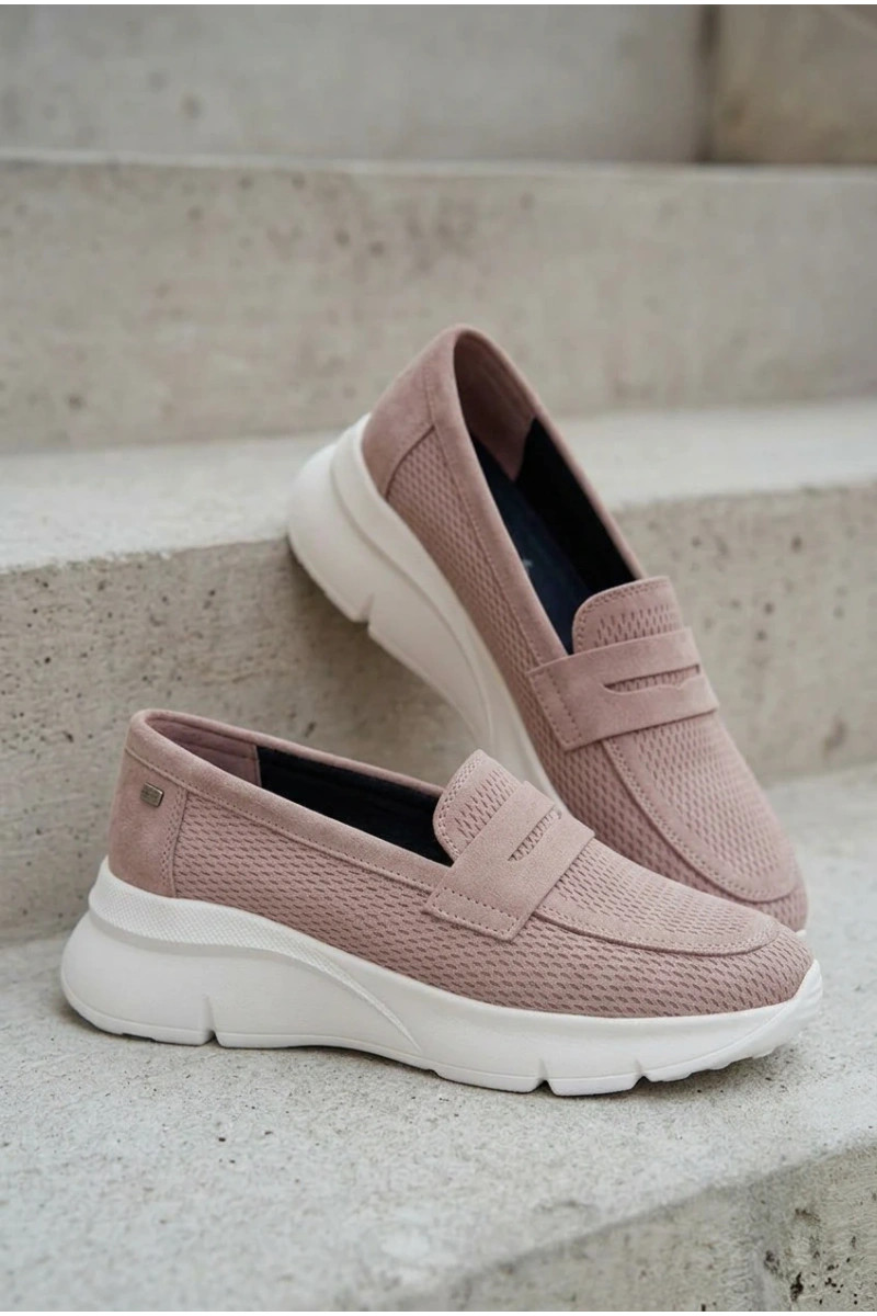 Mocassins femmes en daim naturel avec plateforme Vinceza 79626 couleur rose